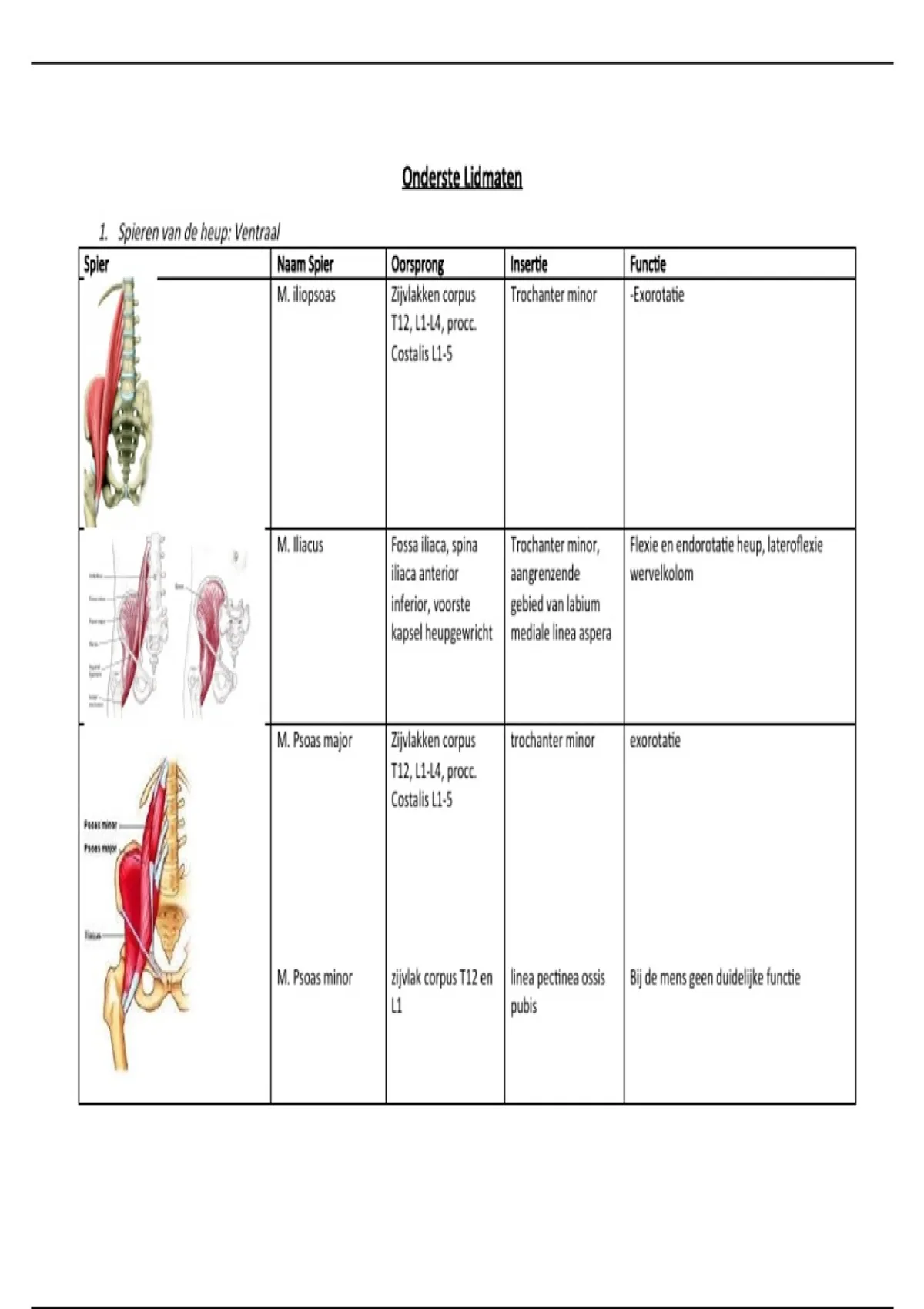 1. Spieren van de heup: Ventraal
