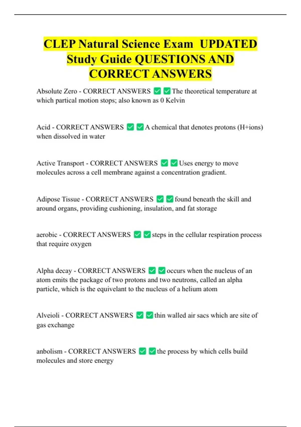 Acid - CORRECT ANSWERS A chemical that denotes protons (H+ions)