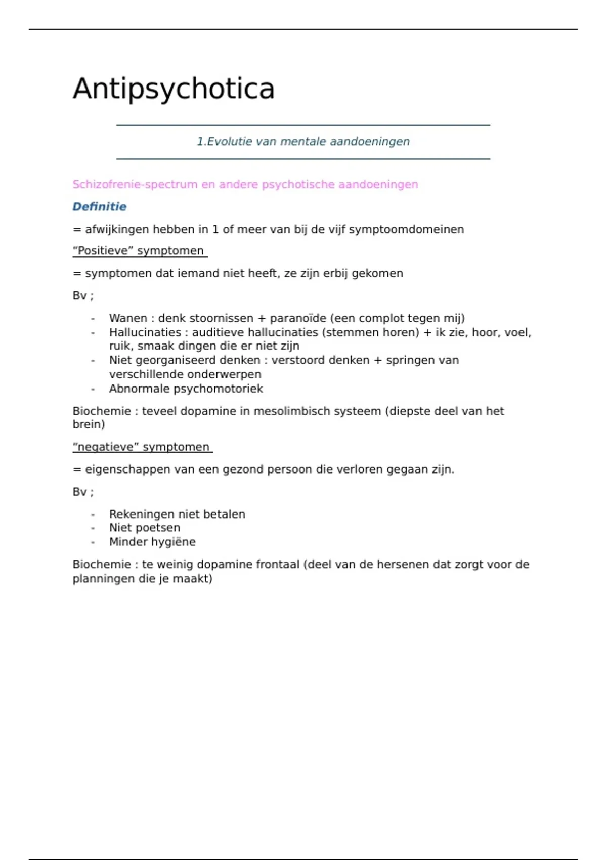 Biochemie : teveel dopamine in mesolimbisch systeem (diepste deel van het