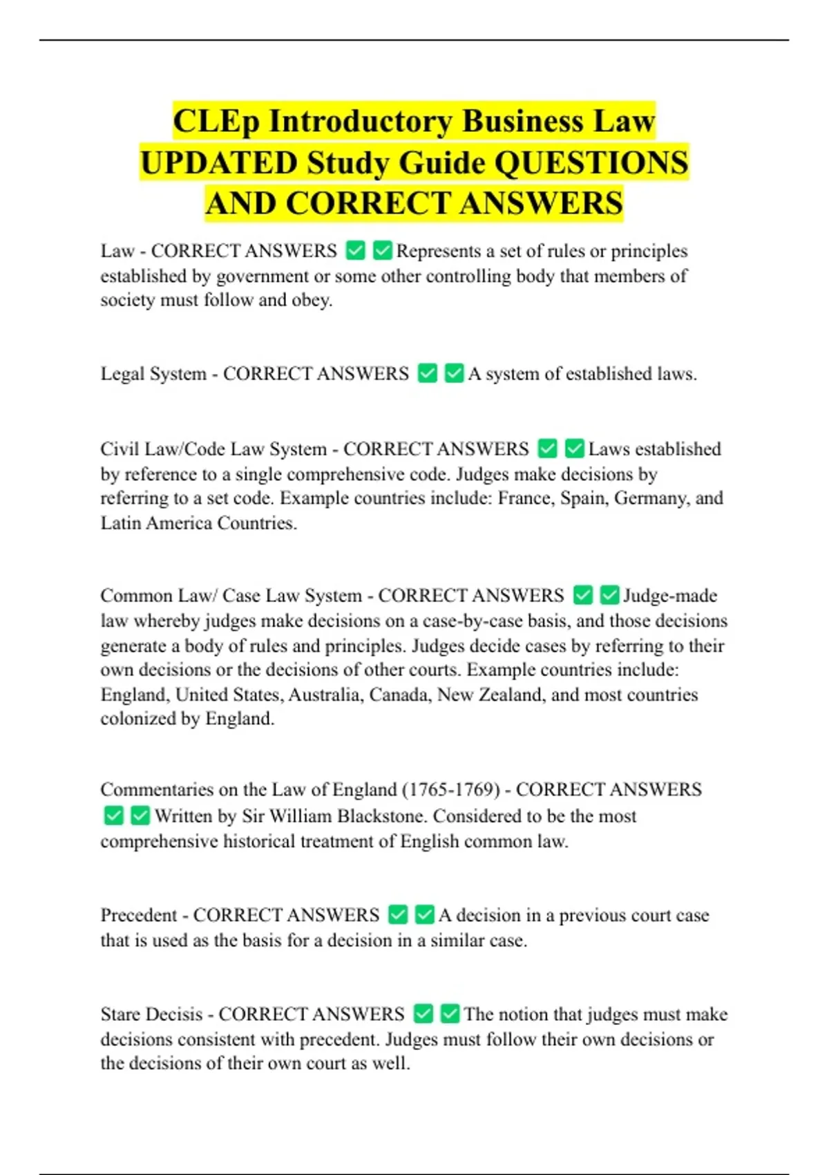 Common Law/ Case Law System - CORRECT ANSWERS Judge-made
