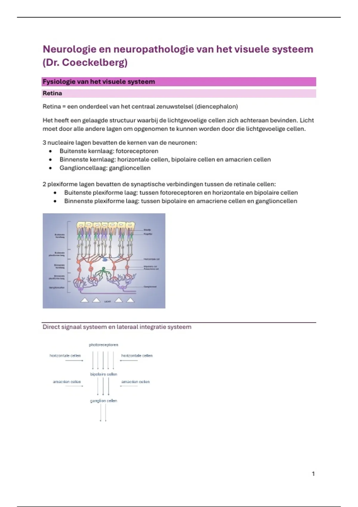 • Buitenste plexiforme laag: tussen fotoreceptoren en horizontale en bipolaire cellen