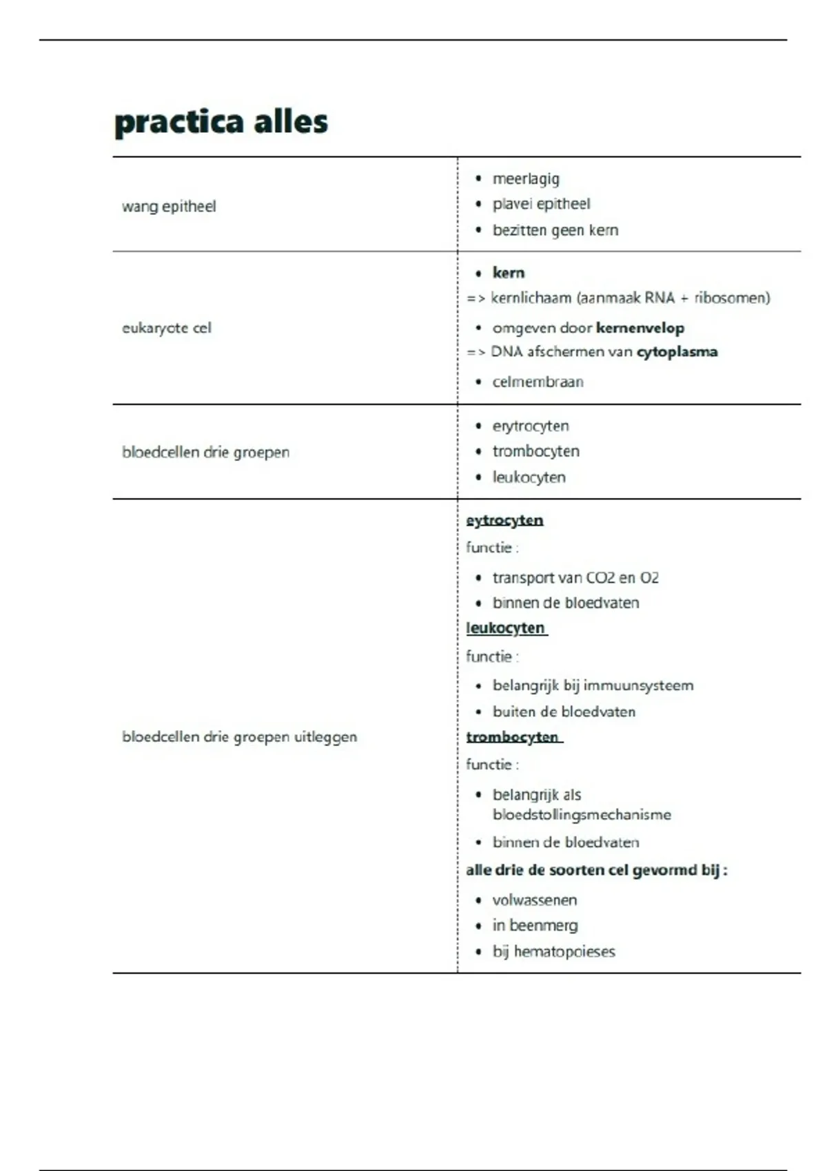 Samenvatting alles van practica basisobservaties cyto en histologie eerste semester