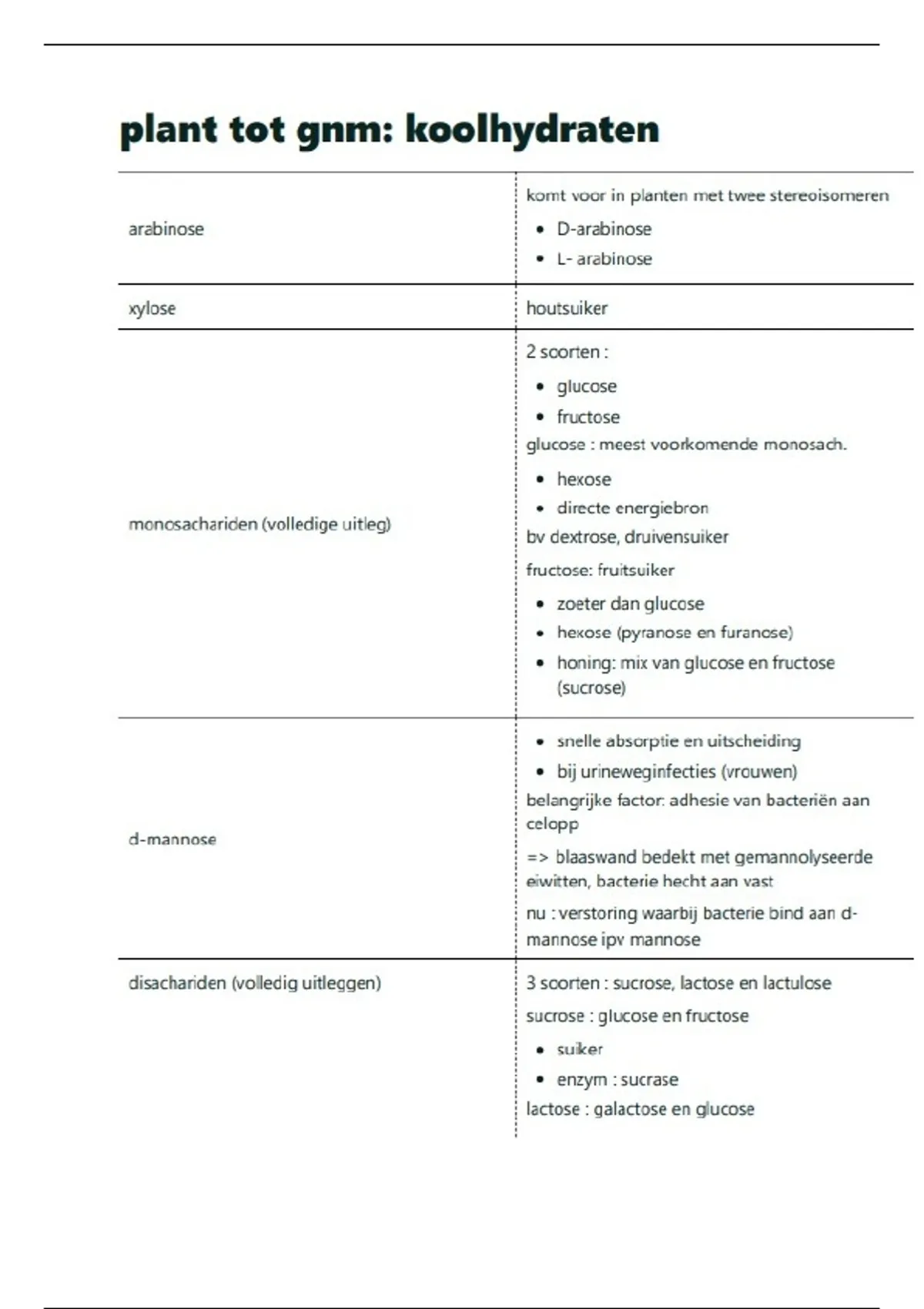dit is een samenvatting van de koolhydraten uit hoofdstuk 6