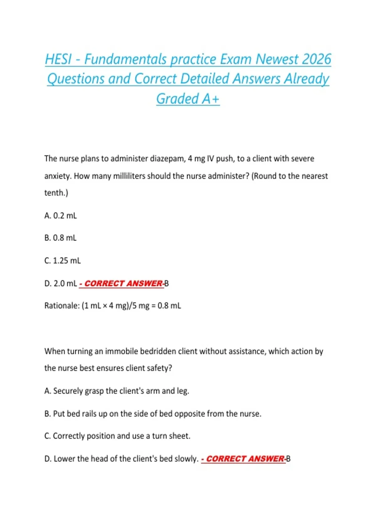 HESI - Fundamentals practice Exam Newest 2026 Questions and Correct Detailed Answers Already Graded A+
