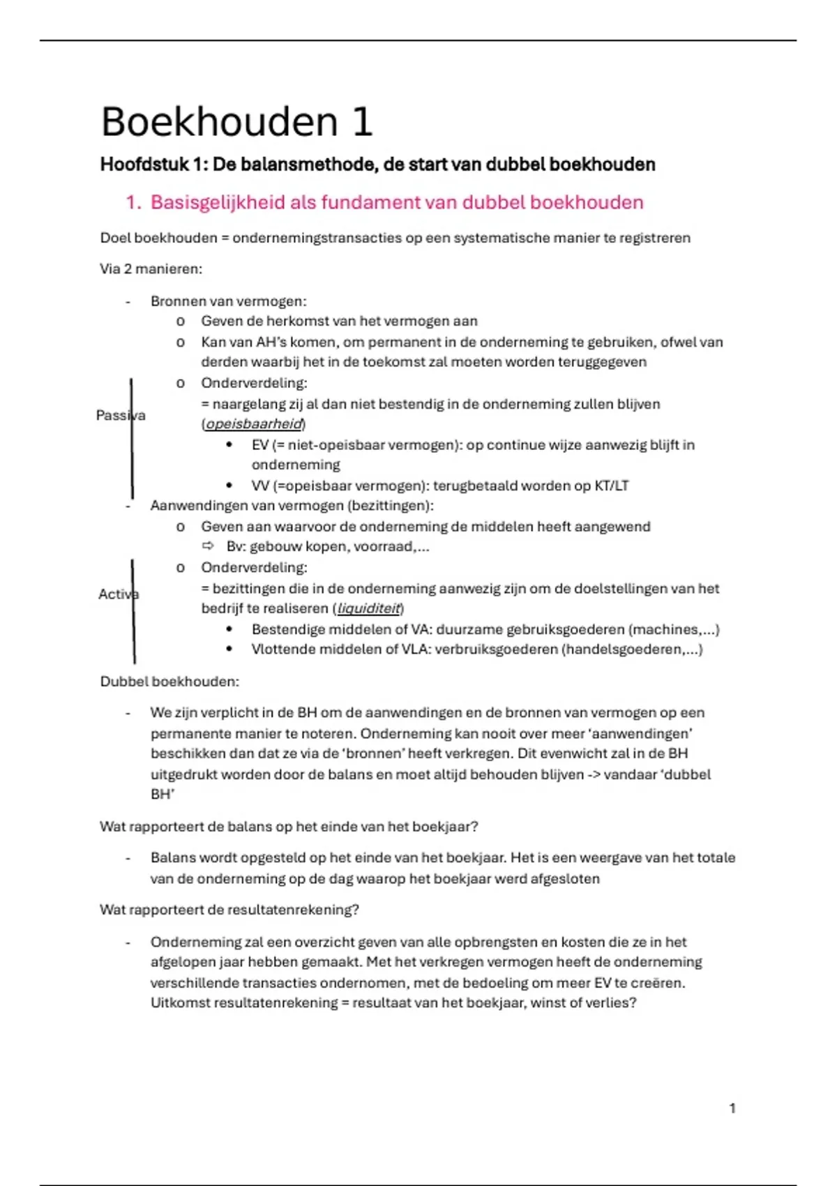 Samenvatting boekhouden 1. 1e jaar Hogent