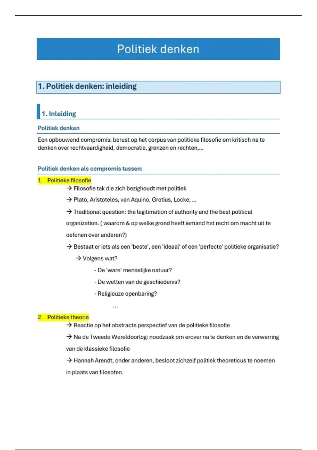 De samenvatting is een Nederlandstalige samenvatting over alle lessen van Political Thought. Alles staat uitgebreid uitgelegd.
