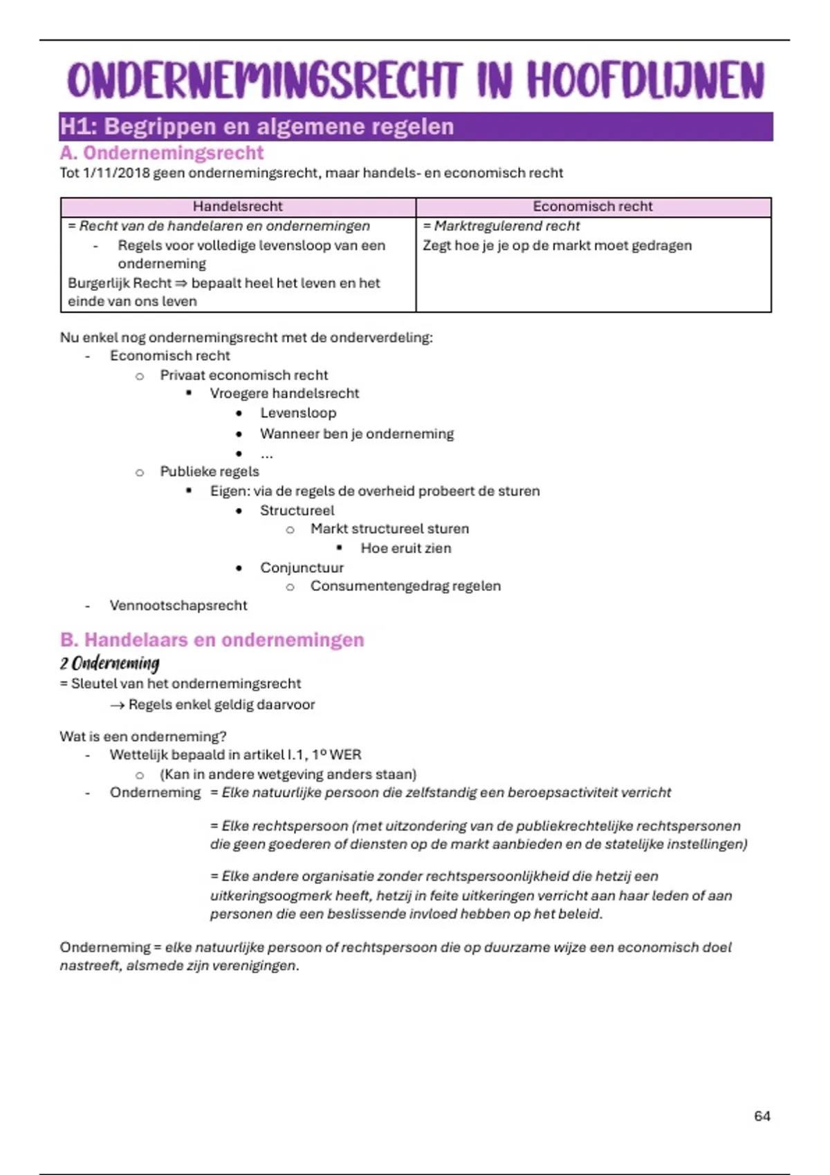 Nu enkel nog ondernemingsrecht met de onderverdeling: