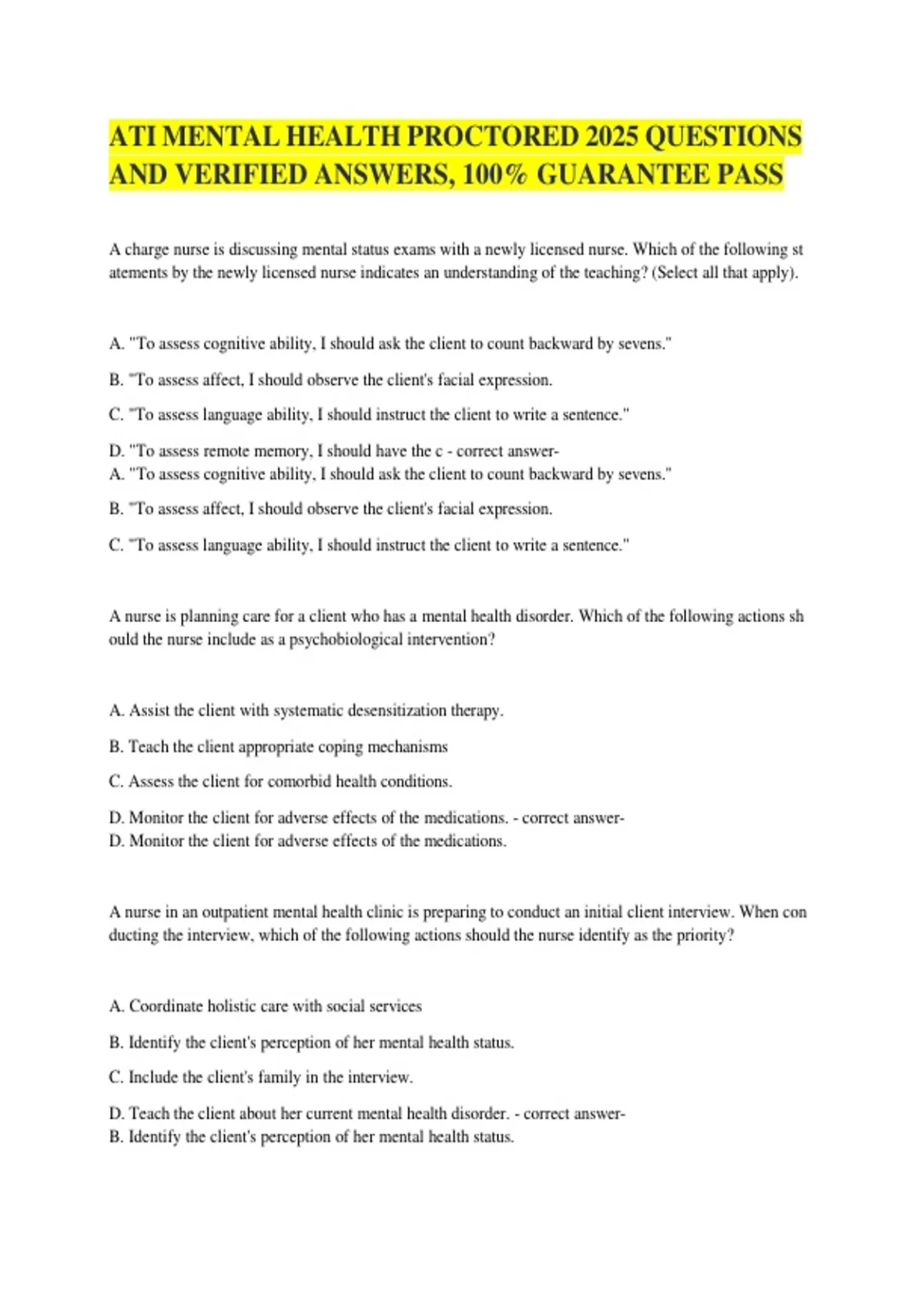 D. Teach the client aboutZher current mental health disorder. - correct answer-