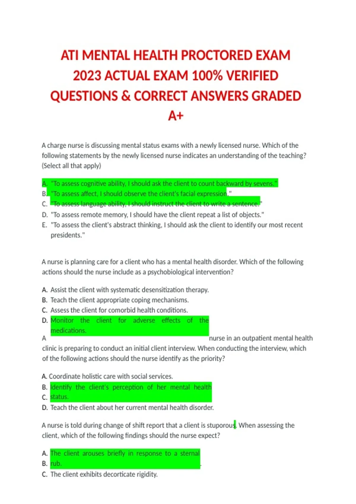 QUESTIONS & CORRECT ANSWERS GRADED
