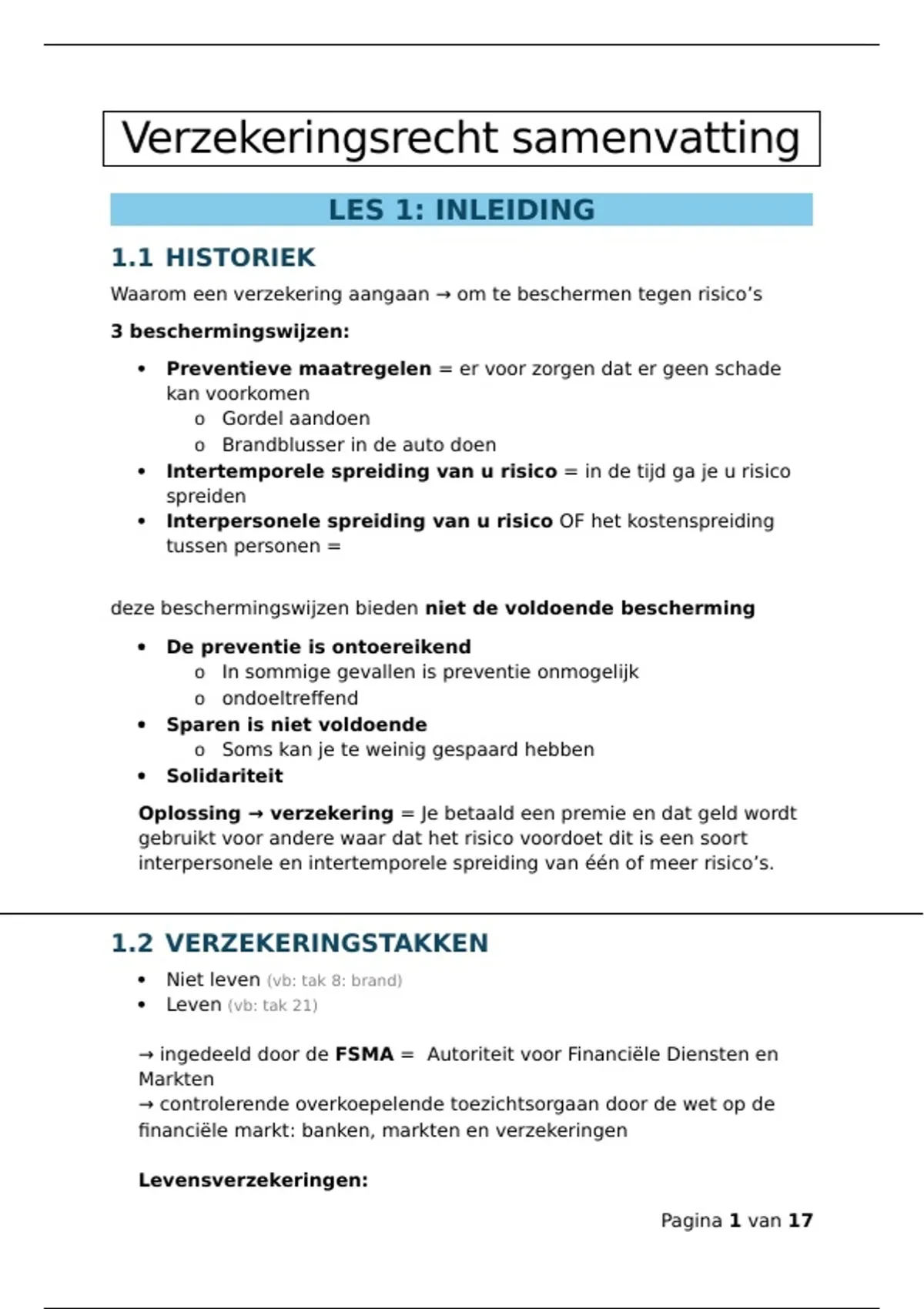 Oplossing → verzekering = Je betaald een premie en dat geld wordt
