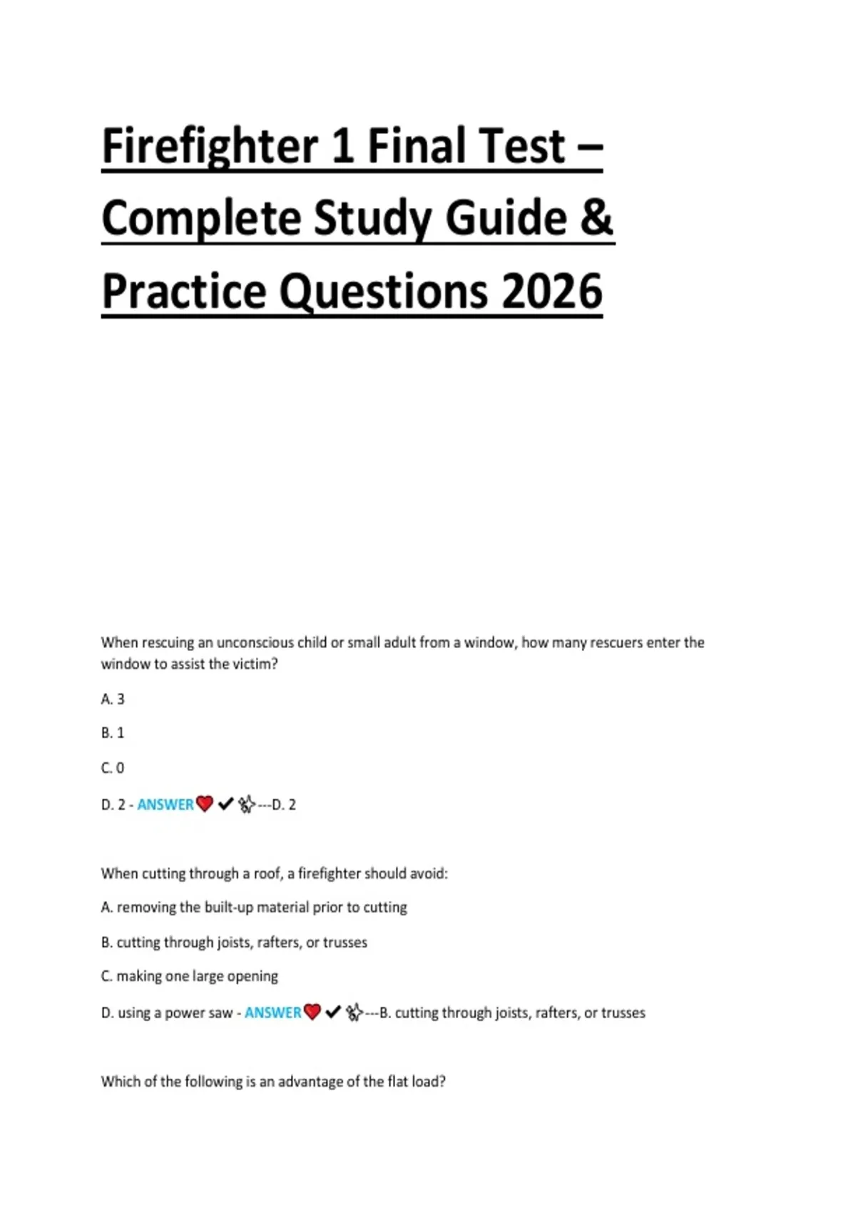 Comprehensive 2026 Firefighter 1 final test study guide with complete practice questions. Covers fire safety, fire suppression techniques, rescue operations, hazardous materials, personal protective equipment, and emergency response procedures. Includes high-yield questions and detailed answers designed to help candidates master Firefighter 1 concepts and excel on the final exam.