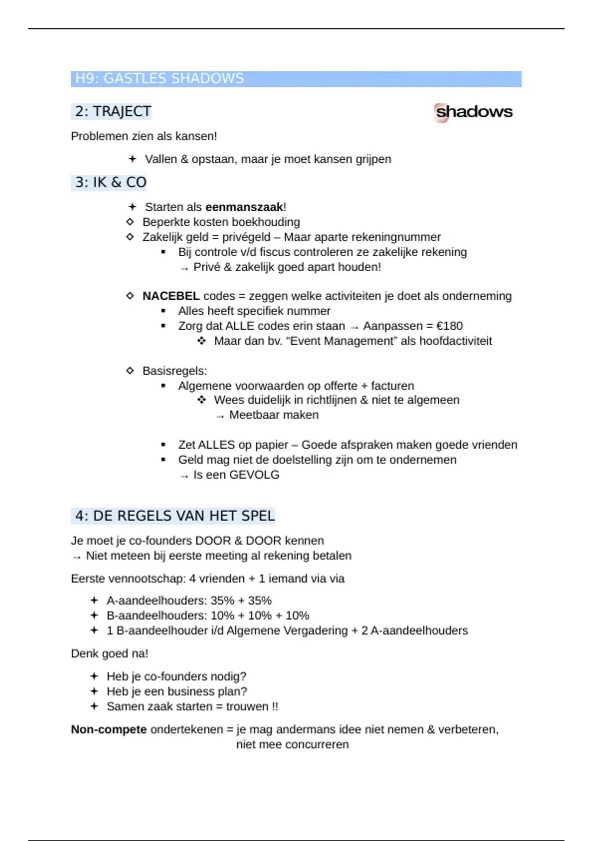 Samenvatting Events Juridische Toepassingen 2e bachelor (lesgever Lieve Stevens) H9 Gastles Shadows
