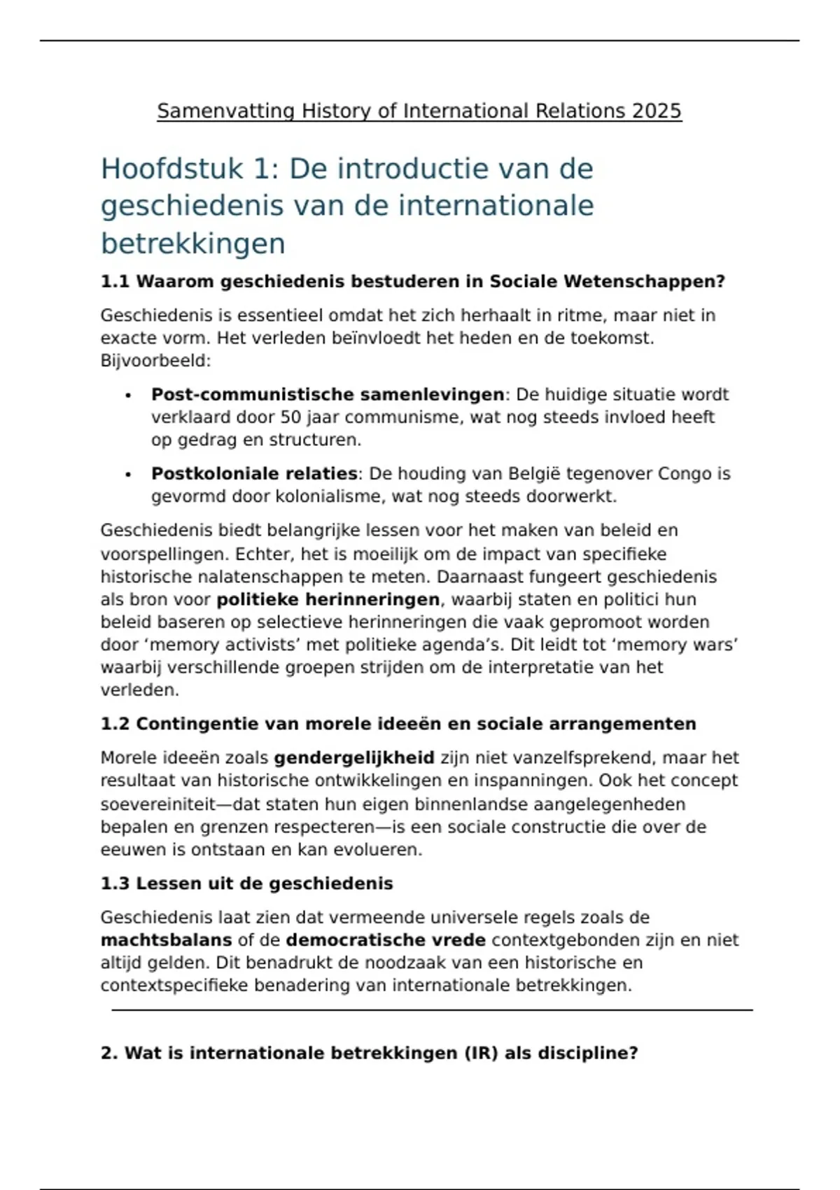 Samenvatting History of International Relations 2025