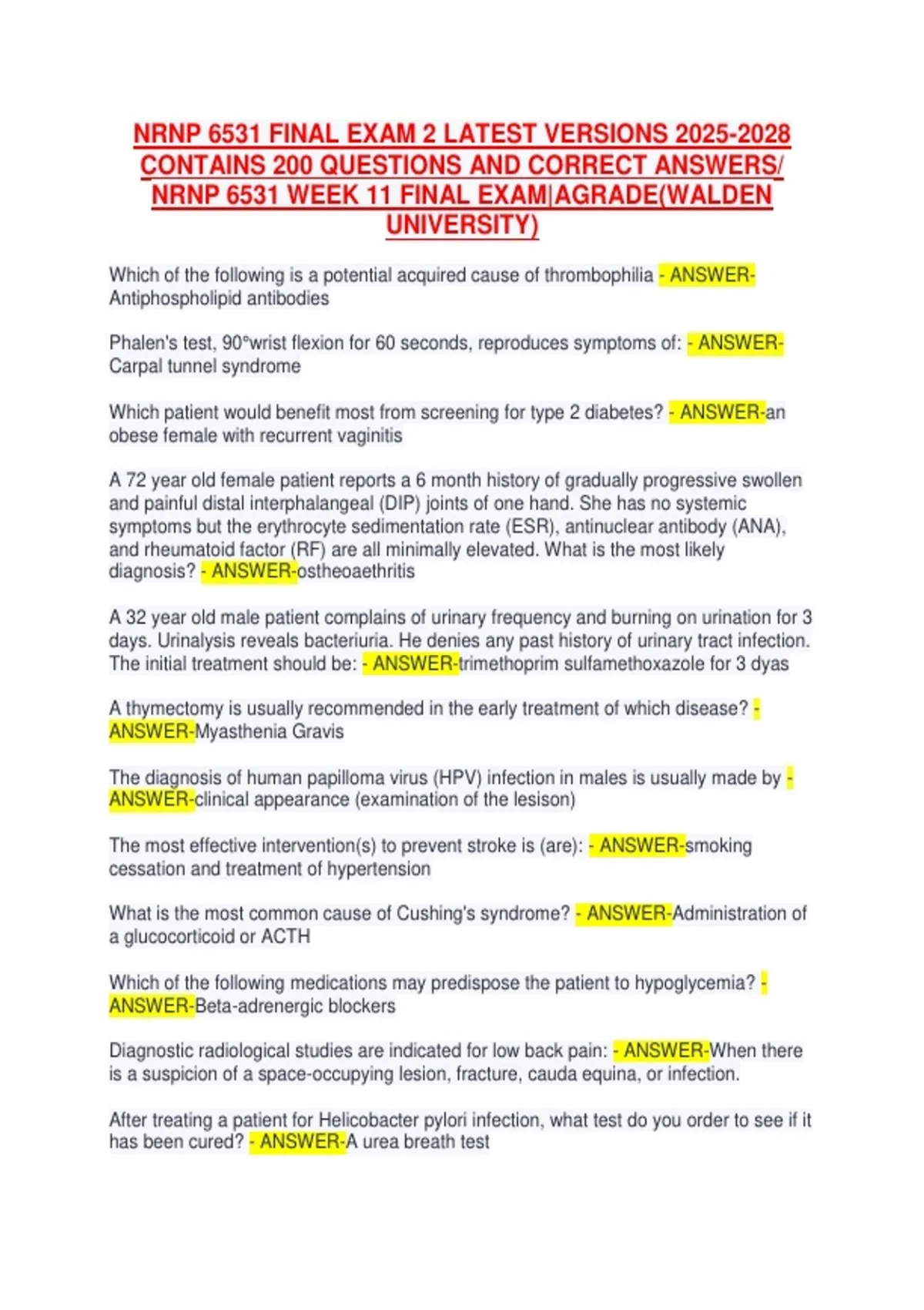 NRNP 6531 WEEK 11 FINAL EXAM|AGRADE(WALDEN