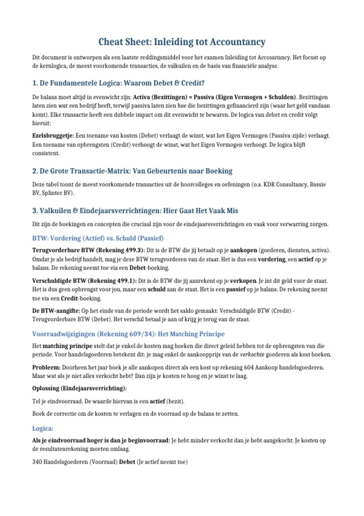Dit document is ontworpen als een laatste reddingsmiddel voor het examen Inleiding tot Accountancy. Het focust op