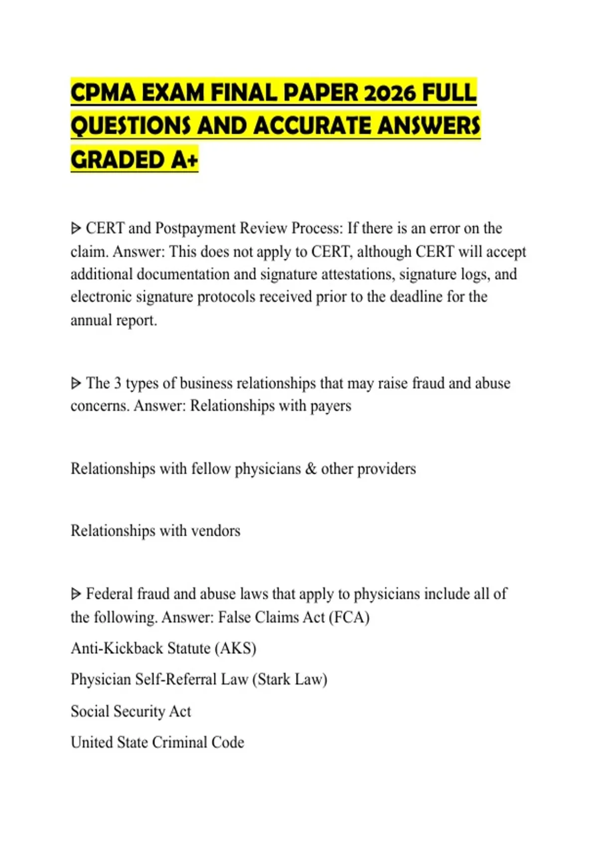 the following. Answer: False Claims Act (FCA)