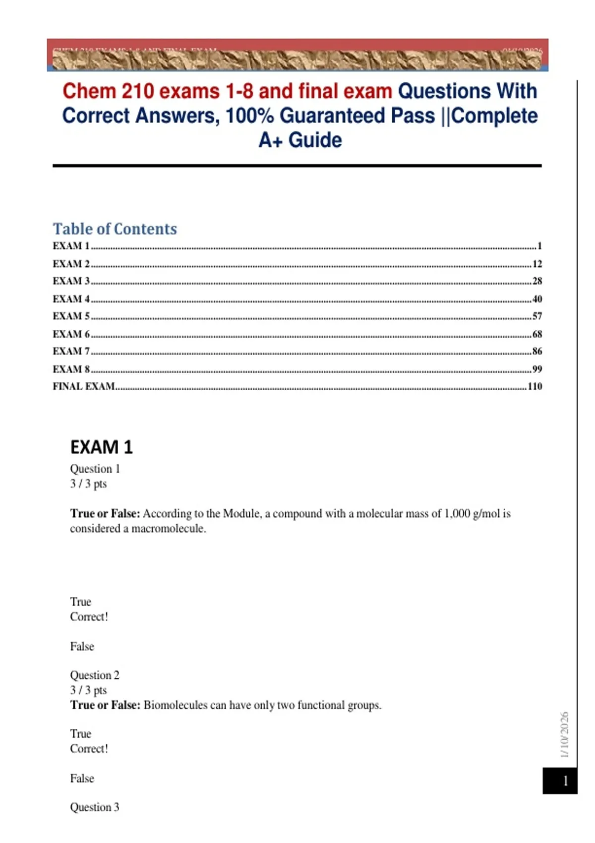 ,CHEM 210 EXAMS 1-8 AND FINAL EXAM 01/10/2026