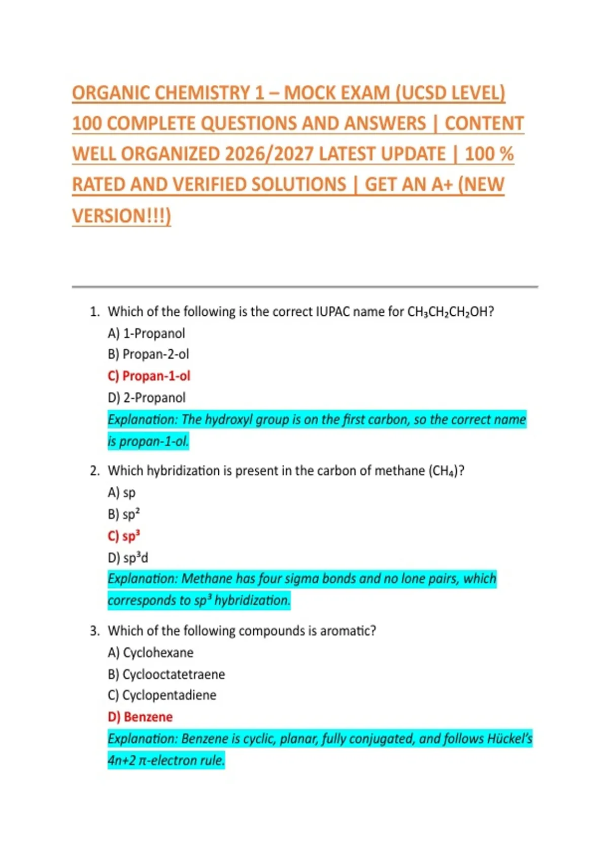 ORGANIC CHEMISTRY 1 – MOCK EXAM (UCSD LEVEL)