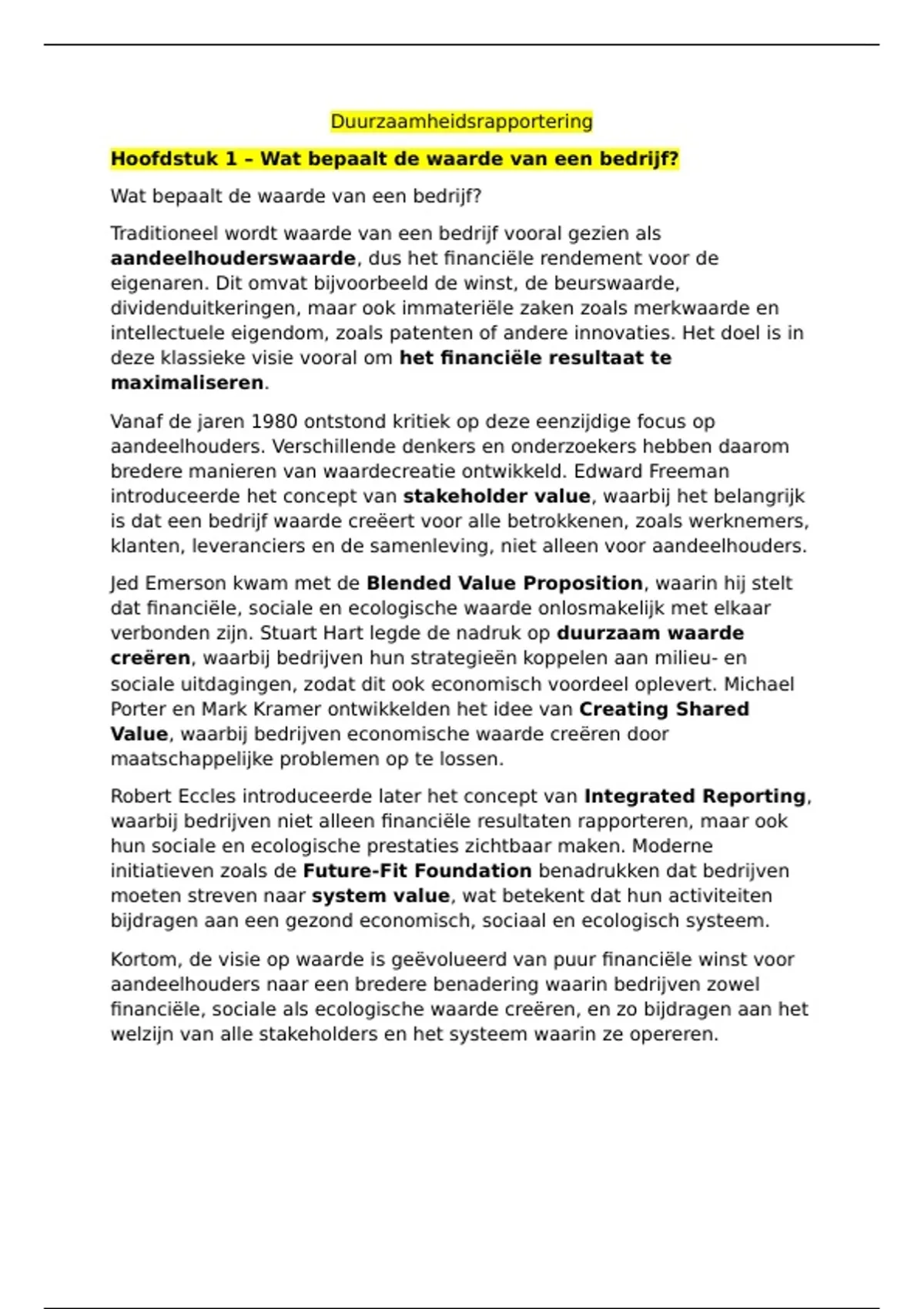 Hoofdstuk 1 – Wat bepaalt de waarde van een bedrijf?
