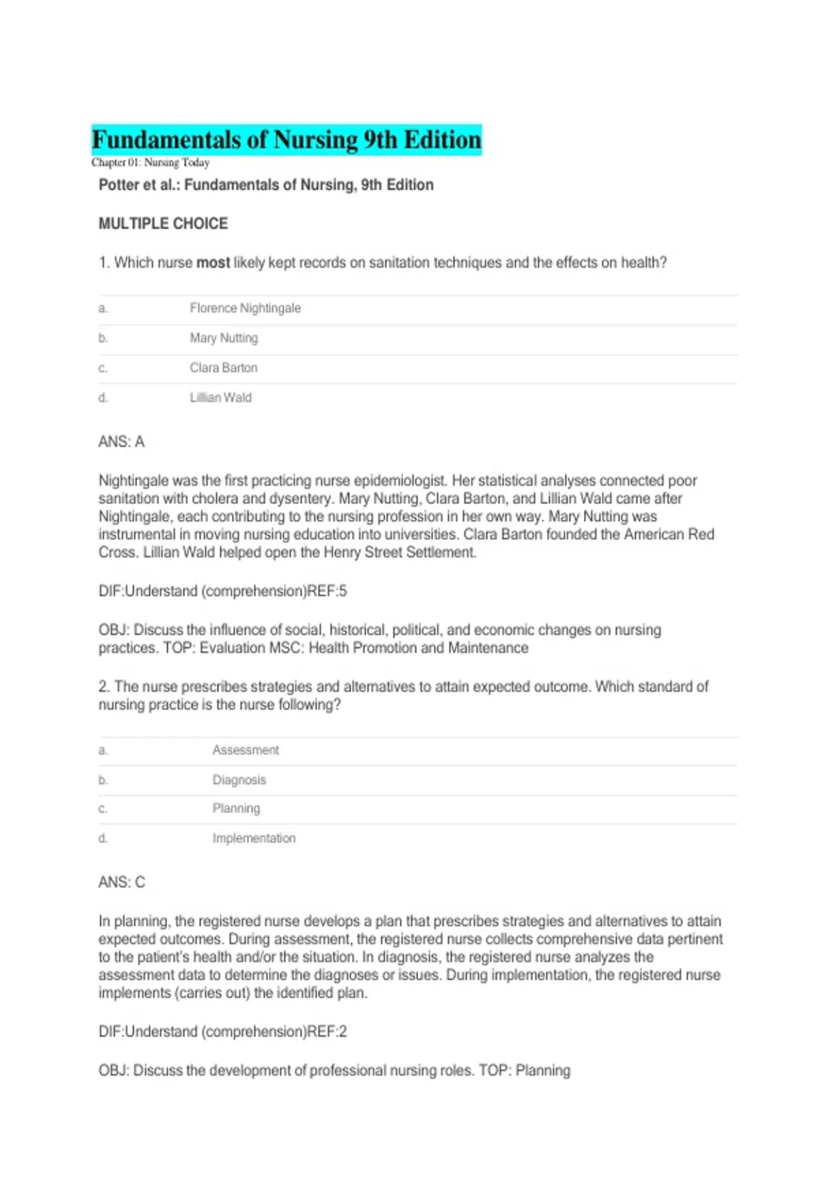Potter et al.: Fundamentals of Nursing, 9th Edition