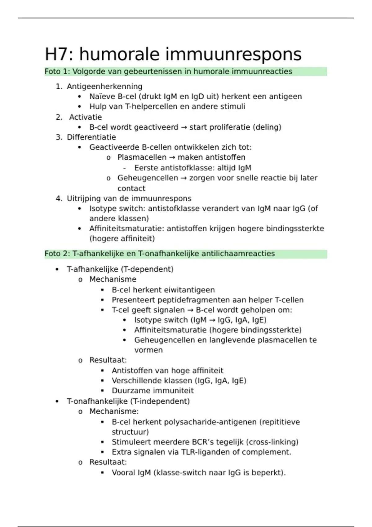 Foto 1: Volgorde van gebeurtenissen in humorale immuunreacties
