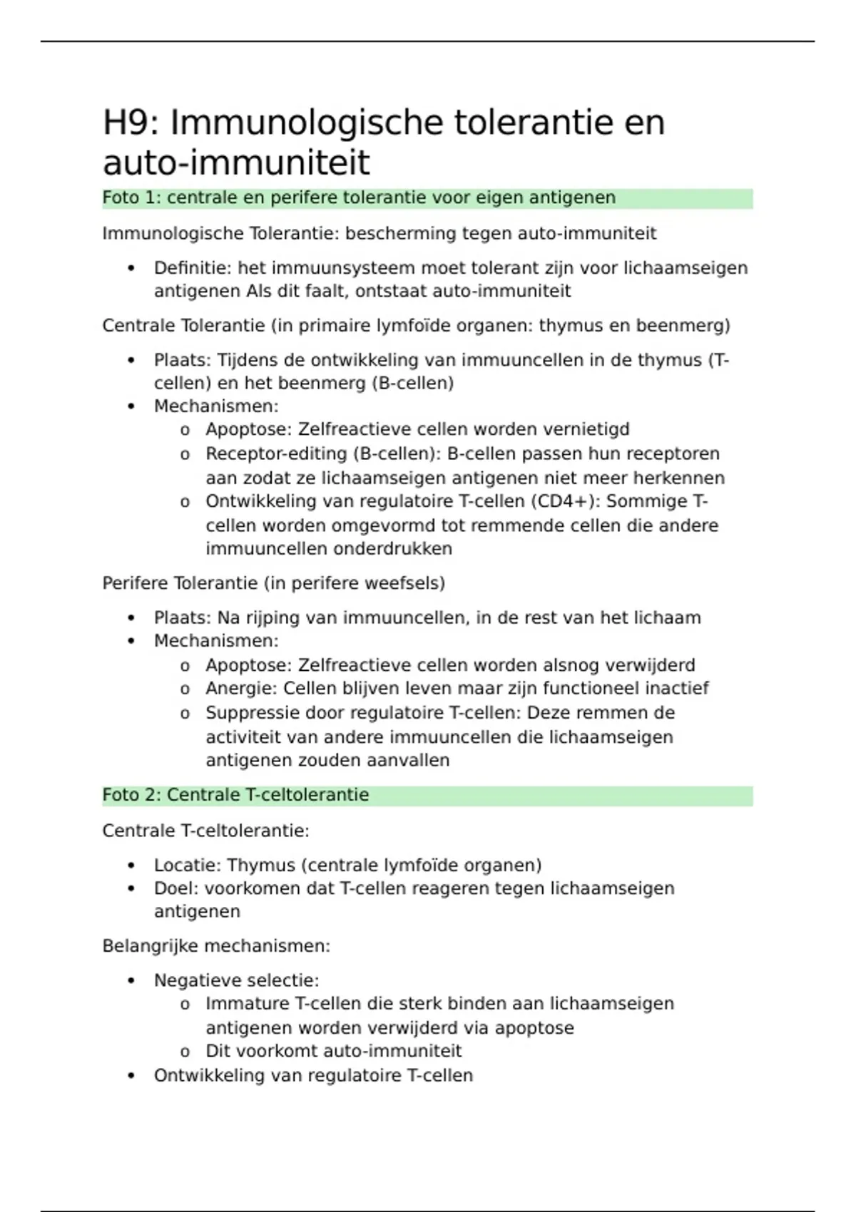 o Apoptose: Zelfreactieve cellen worden alsnog verwijderd