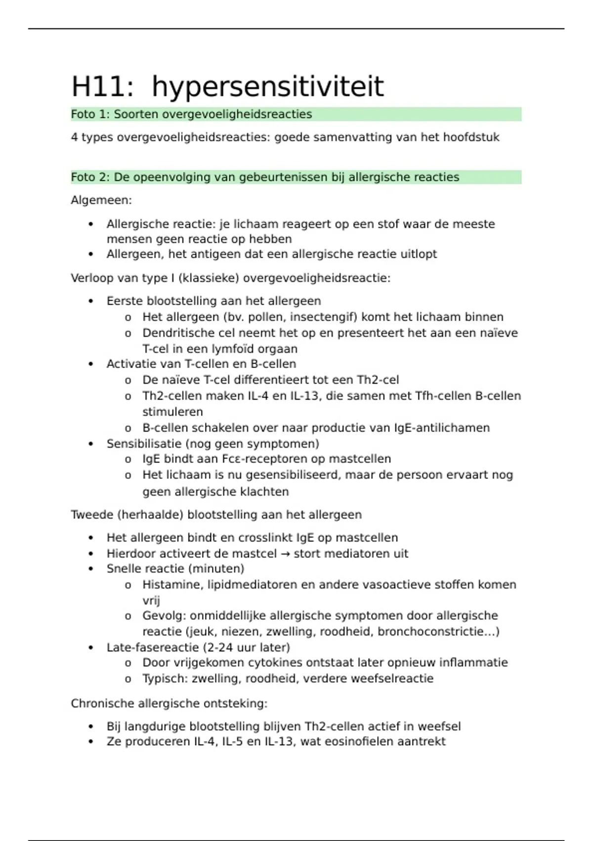 4 types overgevoeligheidsreacties: goede samenvatting van het hoofdstuk