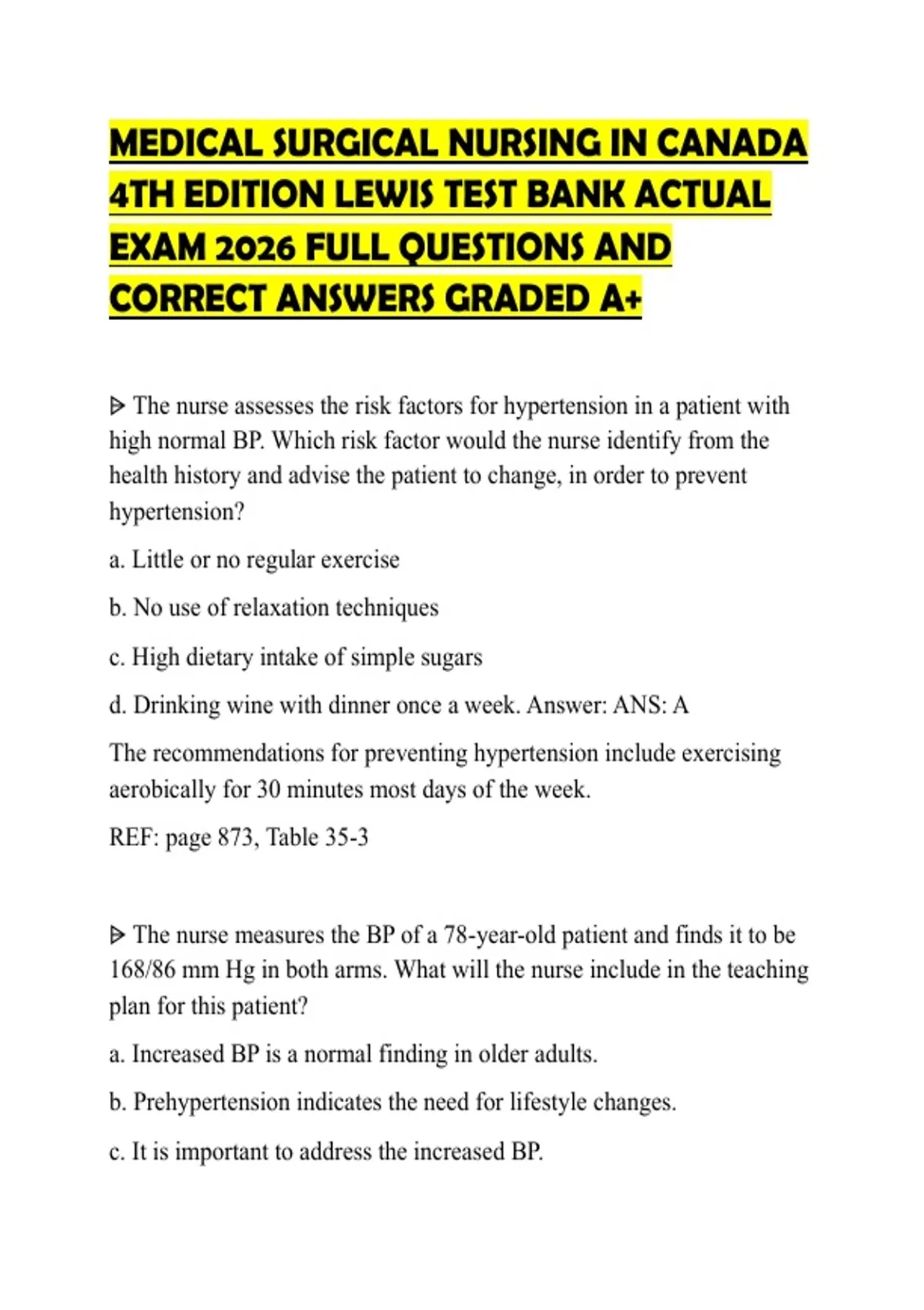 MEDICAL SURGICAL NURSING IN CANADA 4TH EDITION LEWIS TEST BANK ACTUAL EXAM 2026 FULL QUESTIONS AND CORRECT ANSWERS GRADED A+