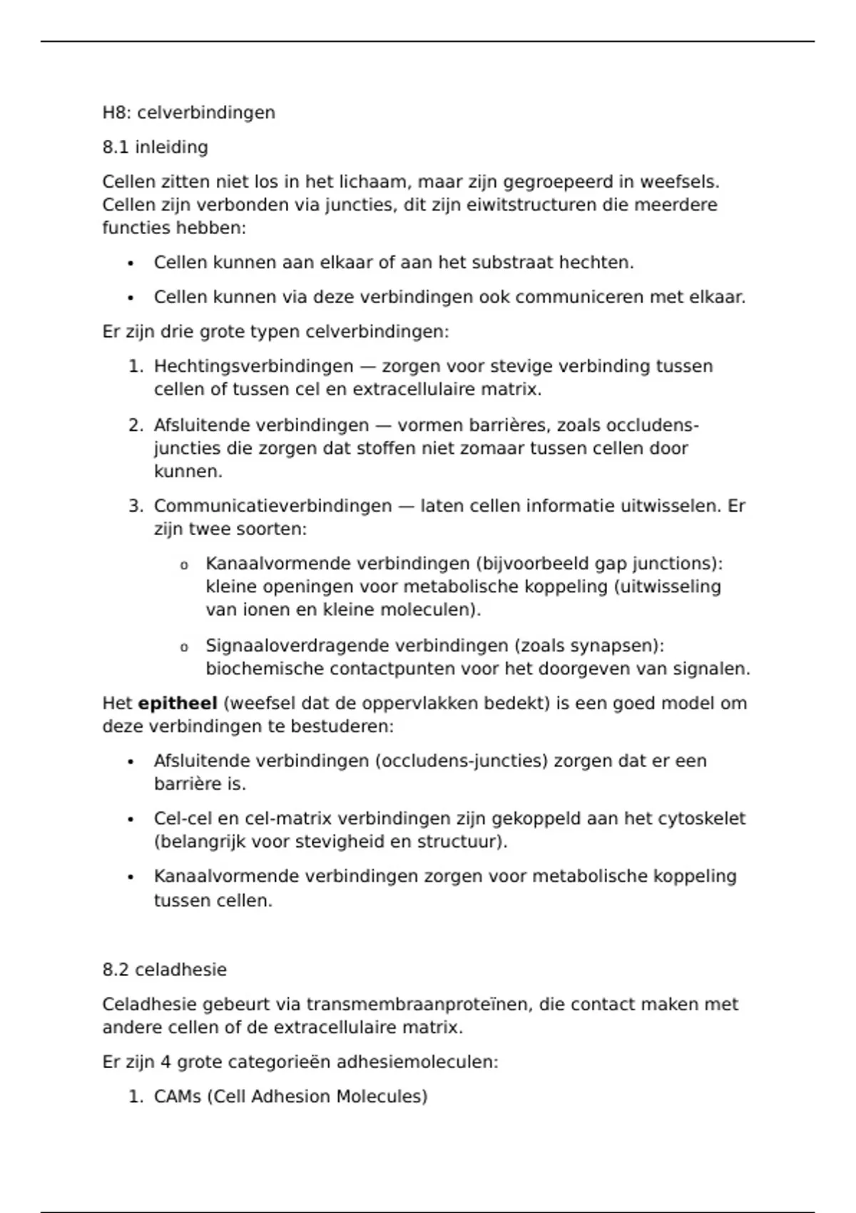 Cellen zijn verbonden via juncties, dit zijn eiwitstructuren die meerdere