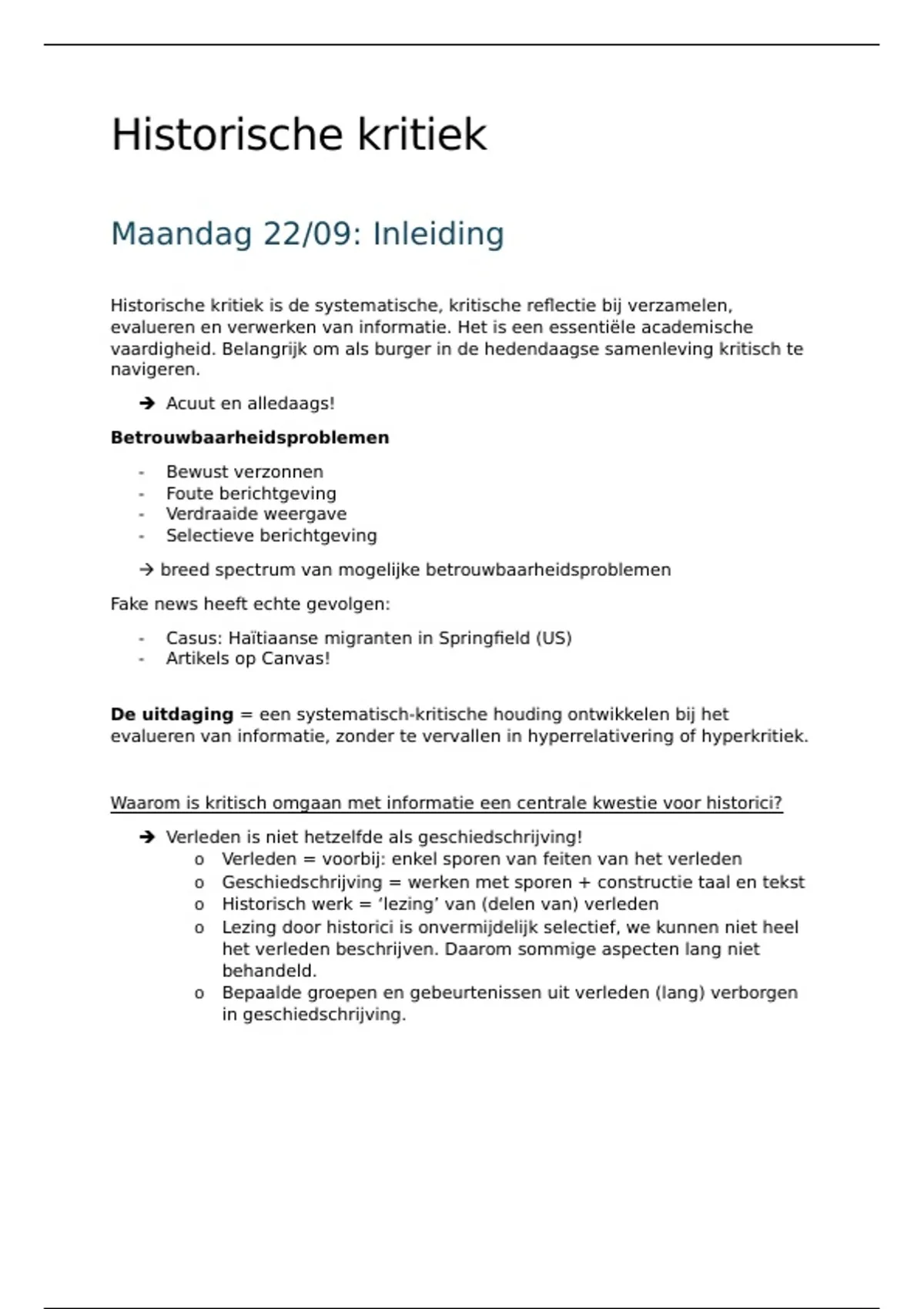 Dit document is een combinatie van lesnota's, slides en informatie uit het handboek voor het vak Historische Kritiek aan de VUB. De bronnen uit de seminaries die je moet voorbereiden zijn hier ook overzichtelijk in samengebracht.