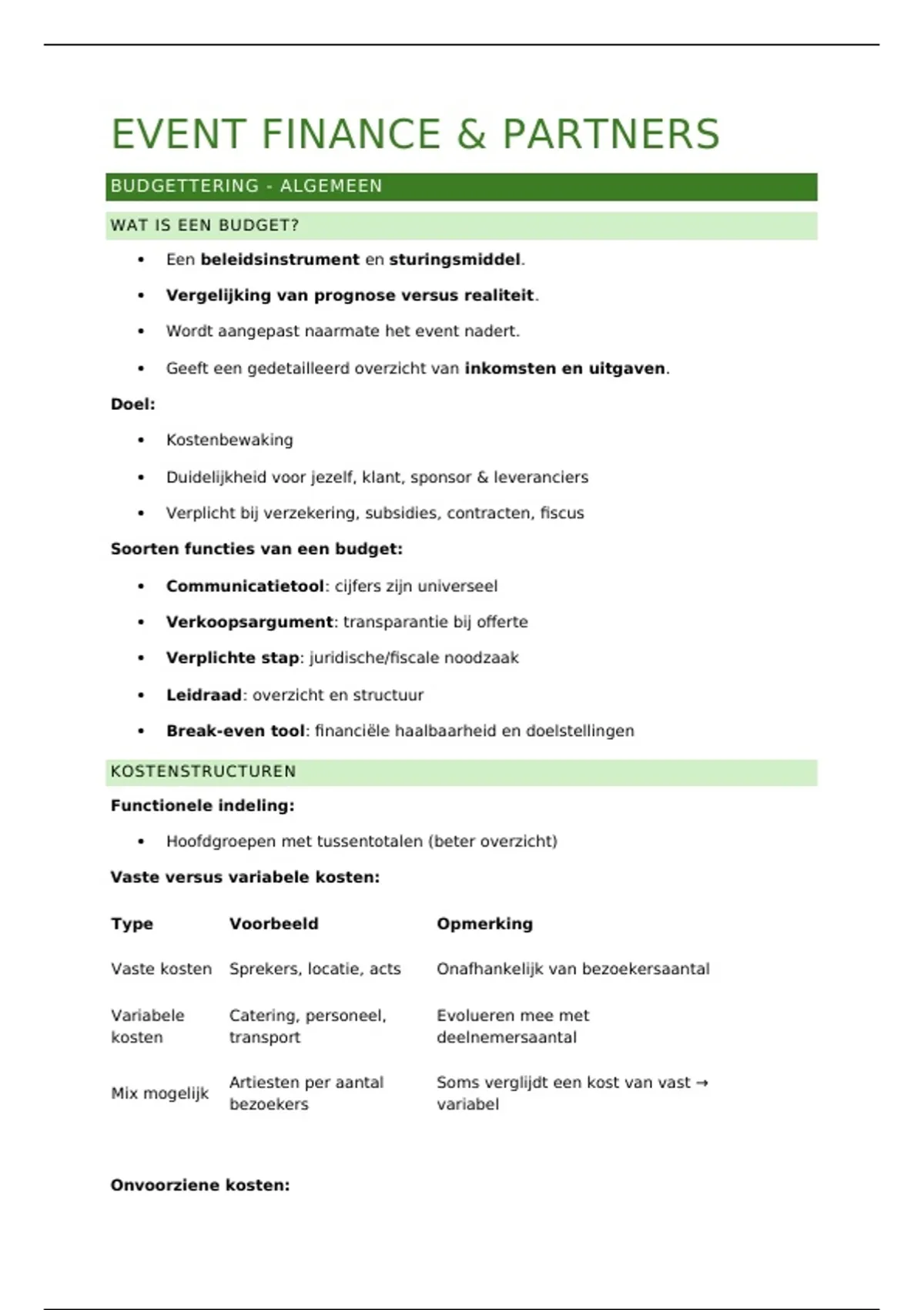 Vaste kosten Sprekers, locatie, acts Onafhankelijk van bezoekersaantal