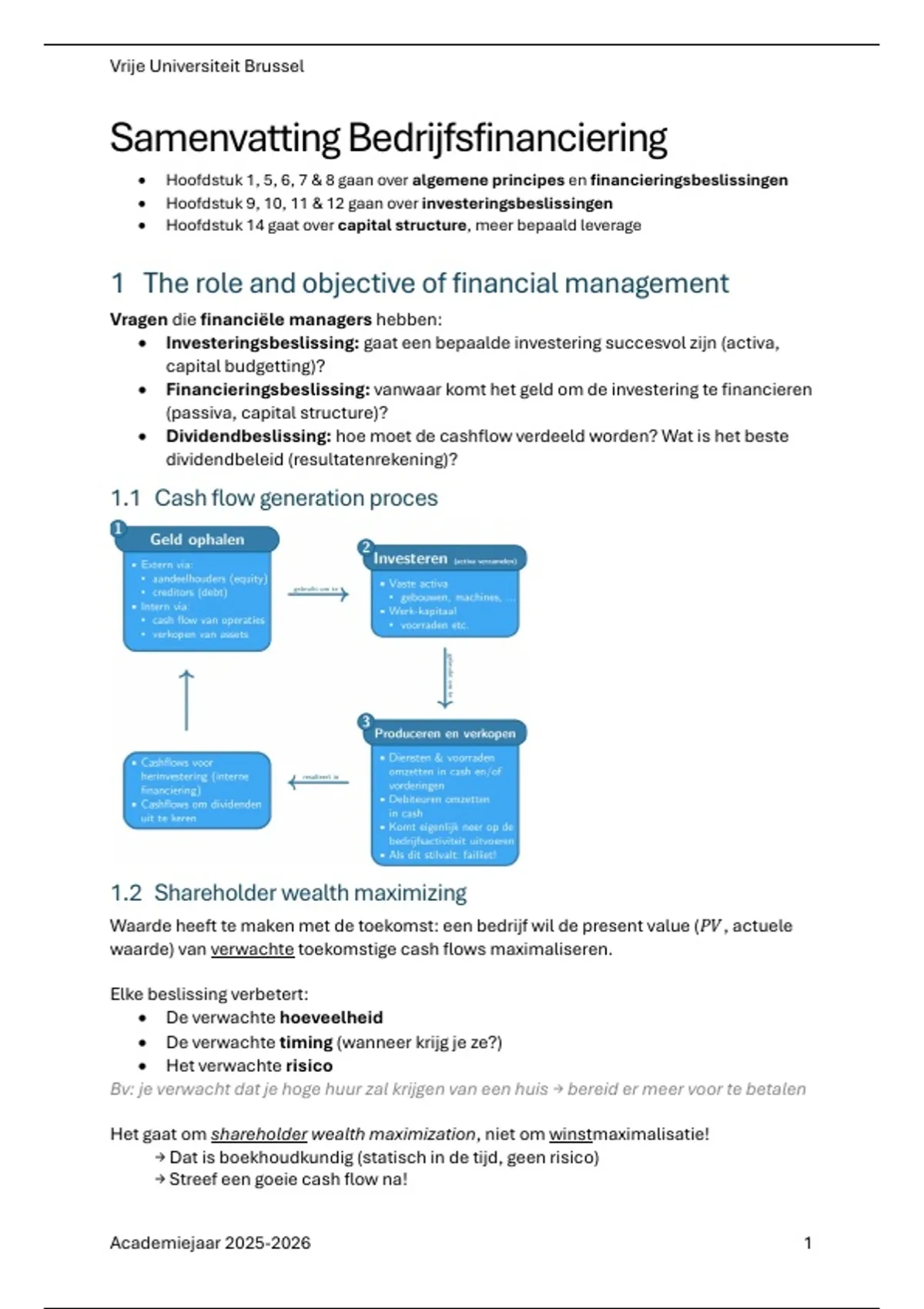 • Hoofdstuk 1, 5, 6, 7 & 8 gaan over algemene principes en financieringsbeslissingen