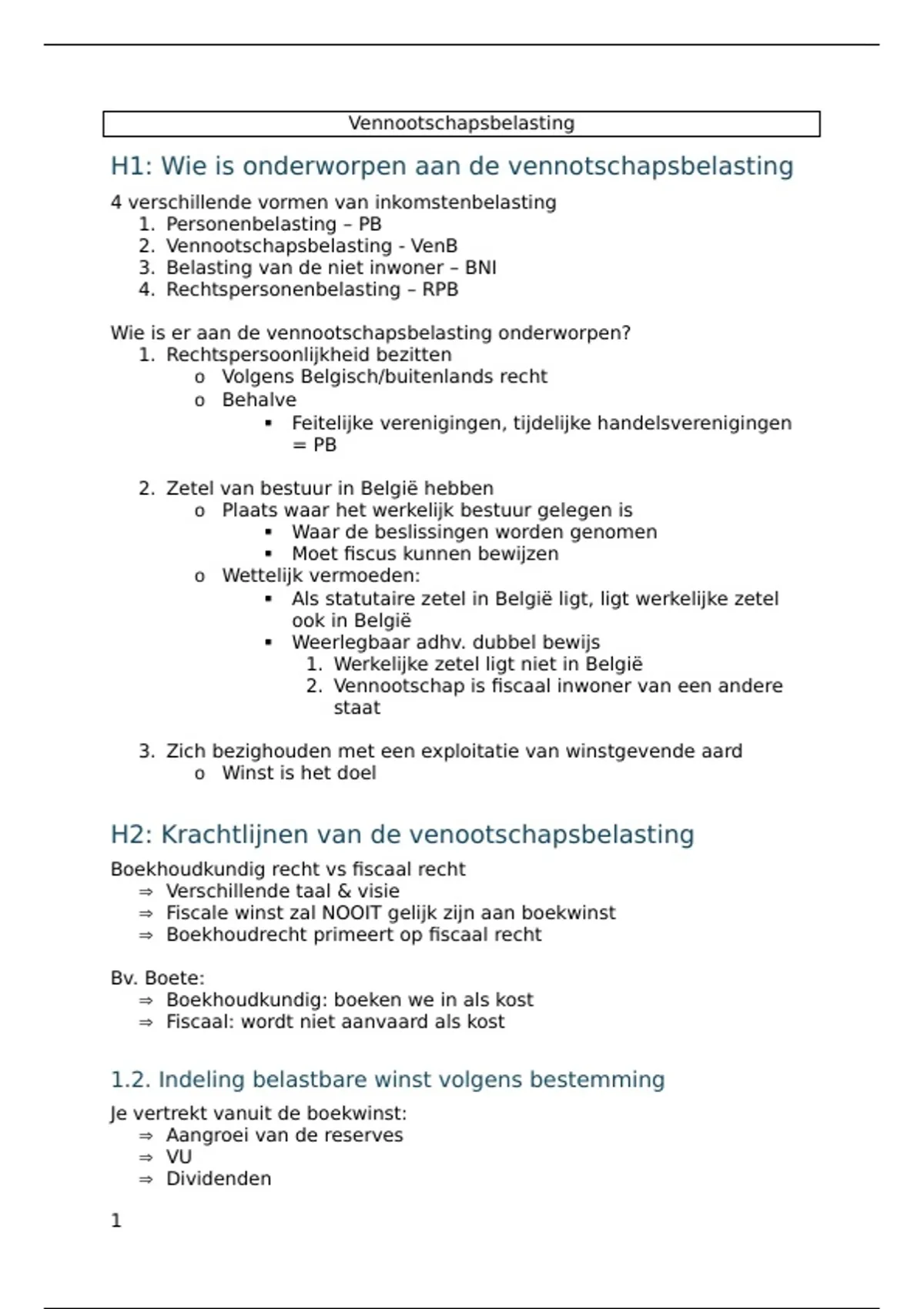 H1: Wie is onderworpen aan de vennotschapsbelasting