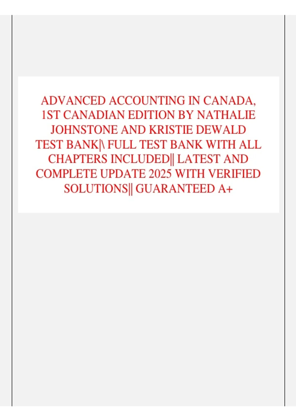ADVANCED ACCOUNTING IN CANADA,