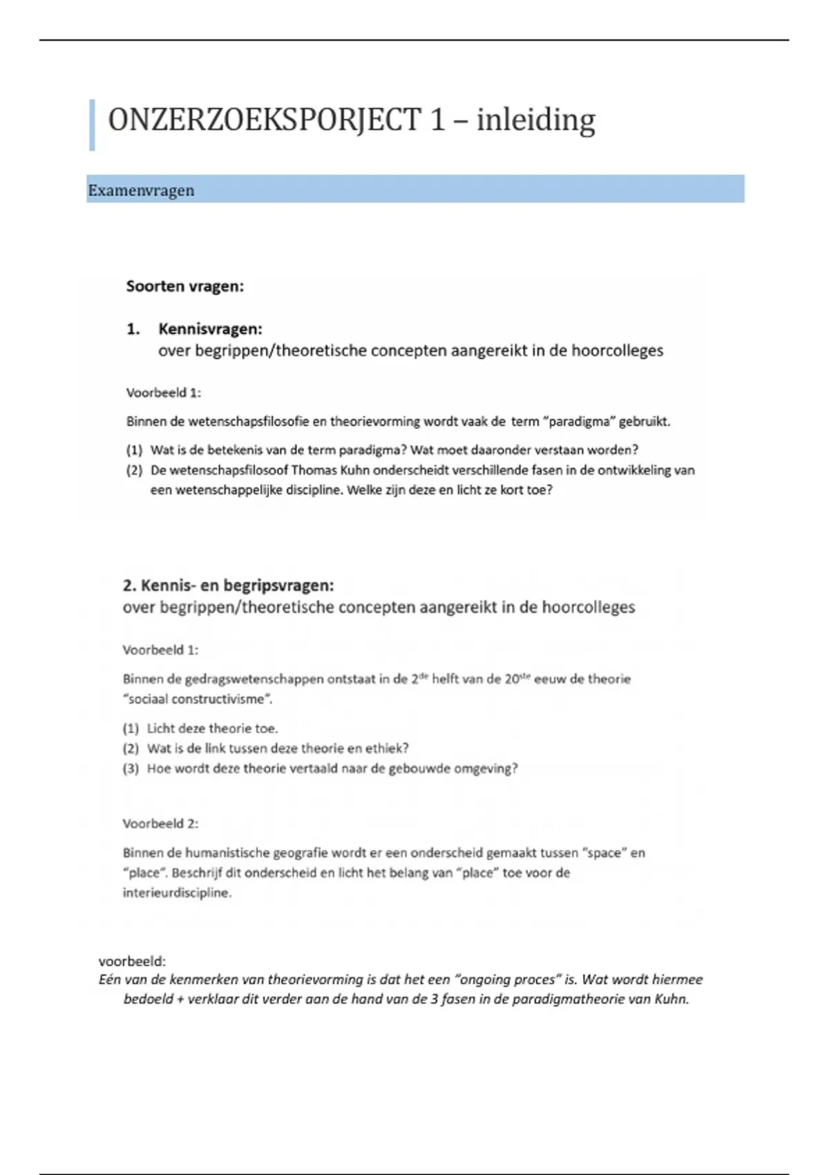 Onderzoeksproject theorie - prof Inge Somers - met extra notities van de les - volledige samenvatting, geen extra slides meer nodig - in duidelijke puntjes structuur zodat het makkelijk leert.