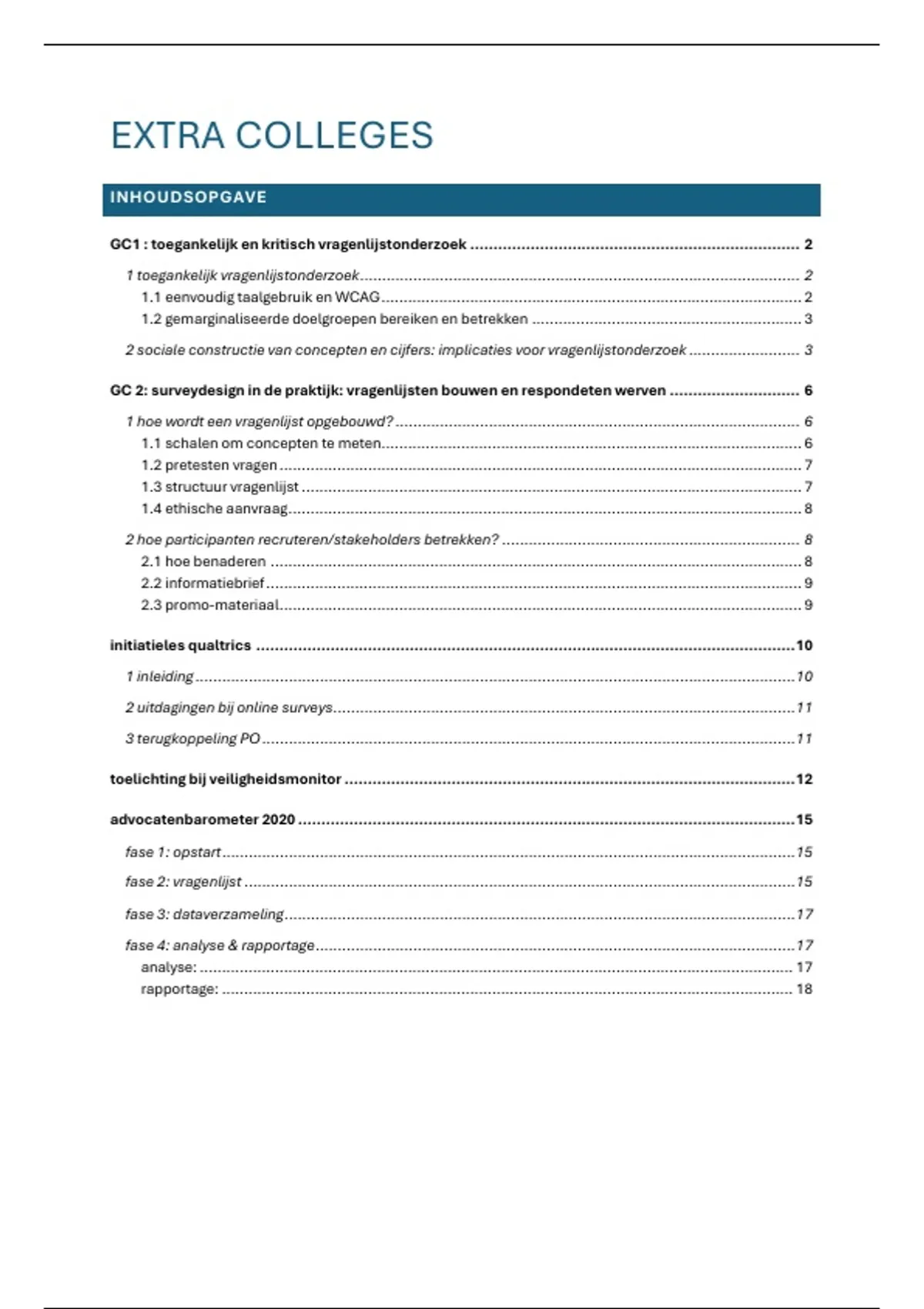 GC 2: surveydesign in de praktijk: vragenlijsten bouwen en respondeten werven ............................ 6