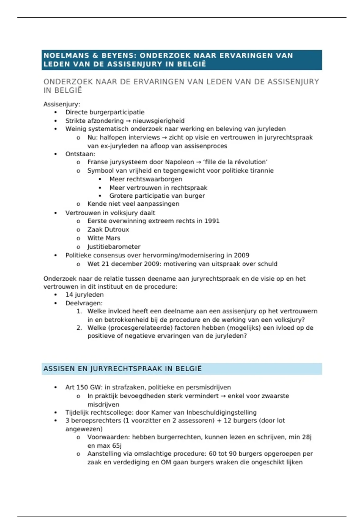 Samenvatting Begeleide zelfstudie 2: Hof van Assisen