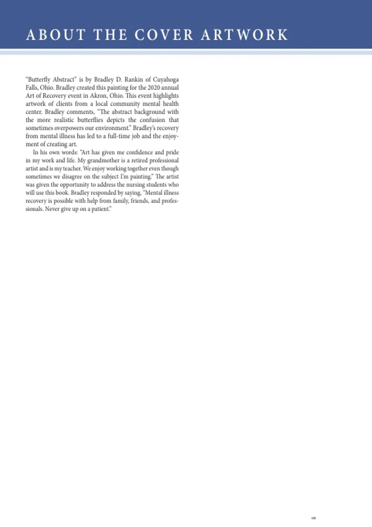 this textbook. Her life’s work in psychiatric nursing has influenced generations of future nurses,