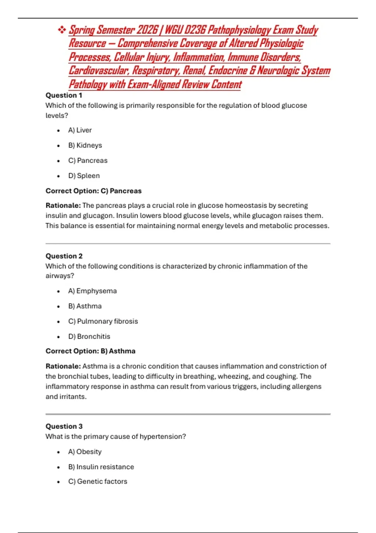 Correct Option: B) Asthma