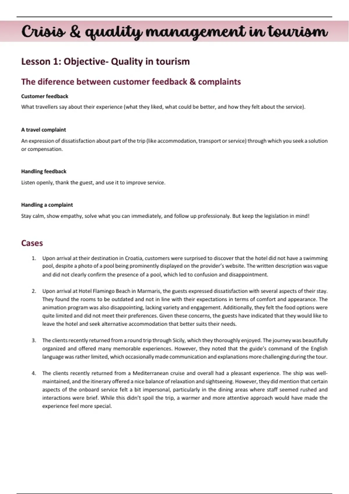 , Handling feedback in a Travel Agency or Tour Operator Setting