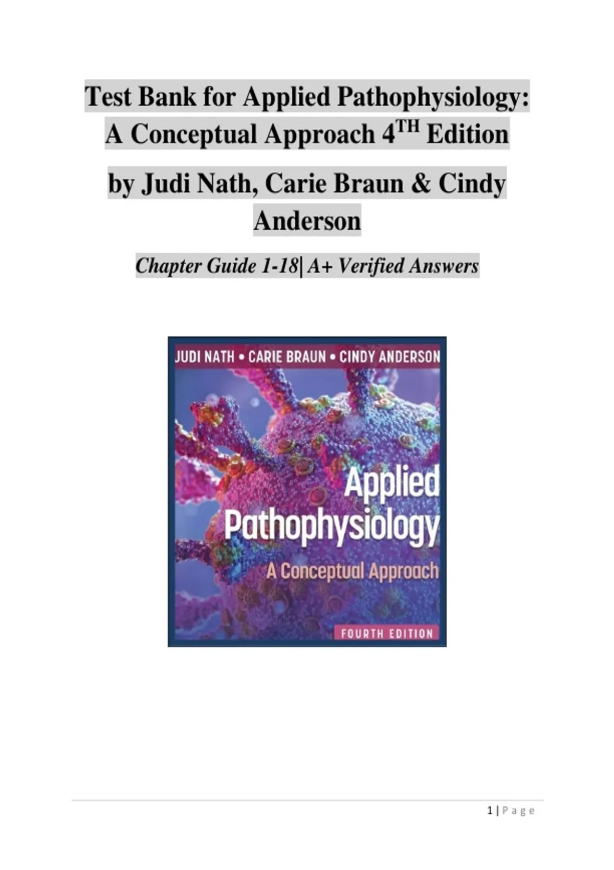This complete test bank for Applied Pathophysiology: A Conceptual Approach, 4th Edition provides a comprehensive chapter guide covering chapters 1 through 18 with A+ verified correct answers. It is designed to support nursing and allied health students in understanding the underlying mechanisms of disease and their clinical implications. The test bank includes high-quality multiple-choice, true/false, short-answer, and application-based questions that emphasize critical thinking and concept-based learning. Core topics include cellular injury, inflammation, immunity, fluid and electrolyte imbalance, cardiovascular, respiratory, renal, endocrine, neurologic, gastrointestinal, and musculoskeletal pathophysiology. Each question is carefully aligned with textbook content and validated for accuracy, making this resource an essential study guide for exams, quizzes, and course assessments, as well as a reliable instructional tool for educators teaching applied pathophysiology courses.