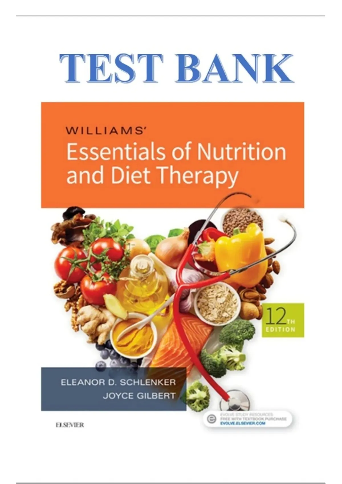 This comprehensive 2025/2026 test bank for Williams’ Essentials of Nutrition and Diet Therapy, 12th Edition by Eleanor Noss Whitney provides a complete set of chapter-based questions with verified correct answers. It is designed for students in nutrition, dietetics, nursing, and allied health programs, offering multiple-choice, true/false, short-answer, and application-based questions that emphasize clinical and practical applications of nutrition. Core topics include nutrient metabolism, dietary planning, life-cycle nutrition, therapeutic diets, nutrition-related disorders, and strategies for promoting health and wellness. Each question is graded A+ for accuracy and relevance, making this test bank an essential study guide for exams, quizzes, and assignments, as well as a reliable instructional resource for educators teaching nutrition and diet therapy courses.