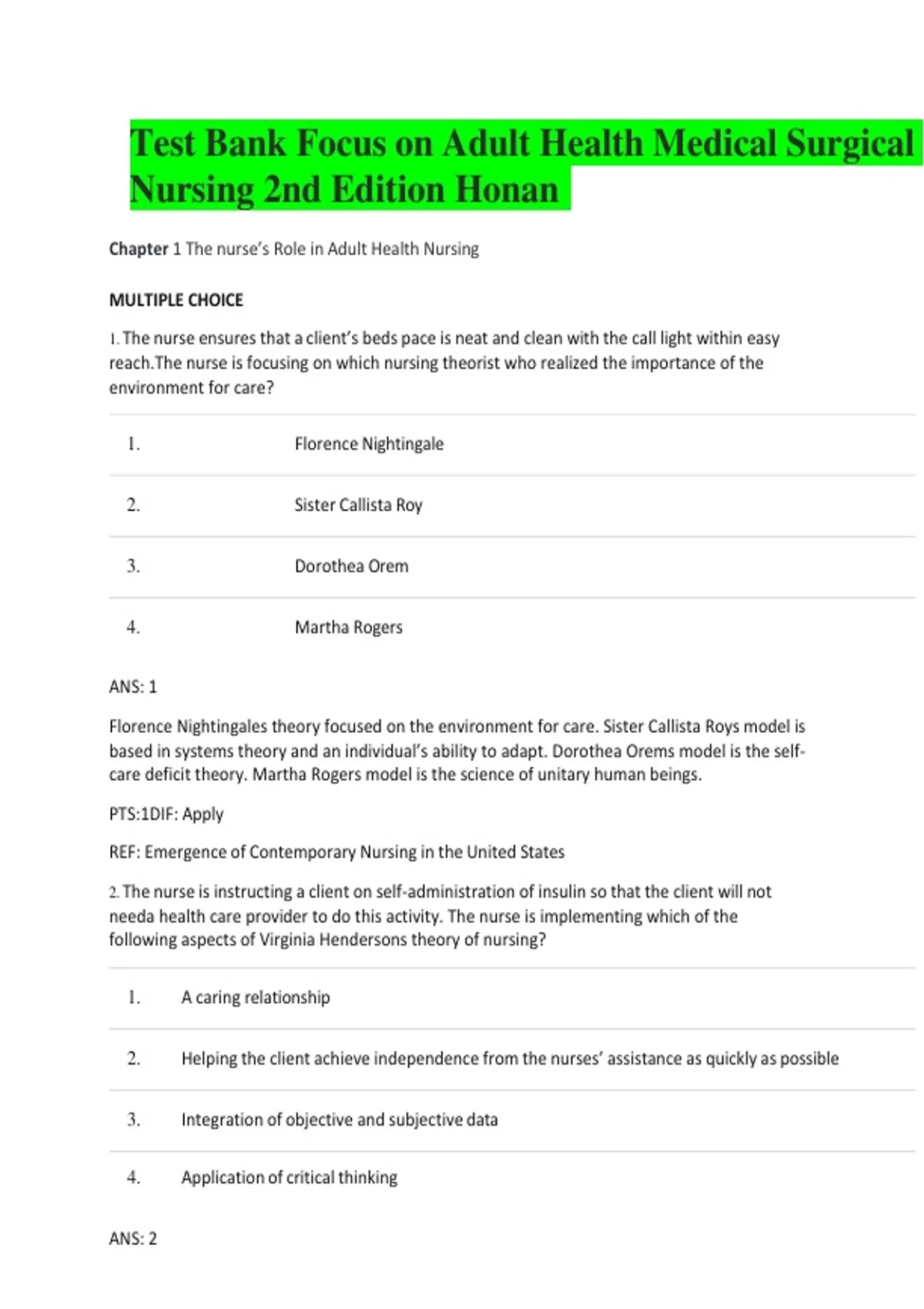 Nursing 2nd Edition Honan