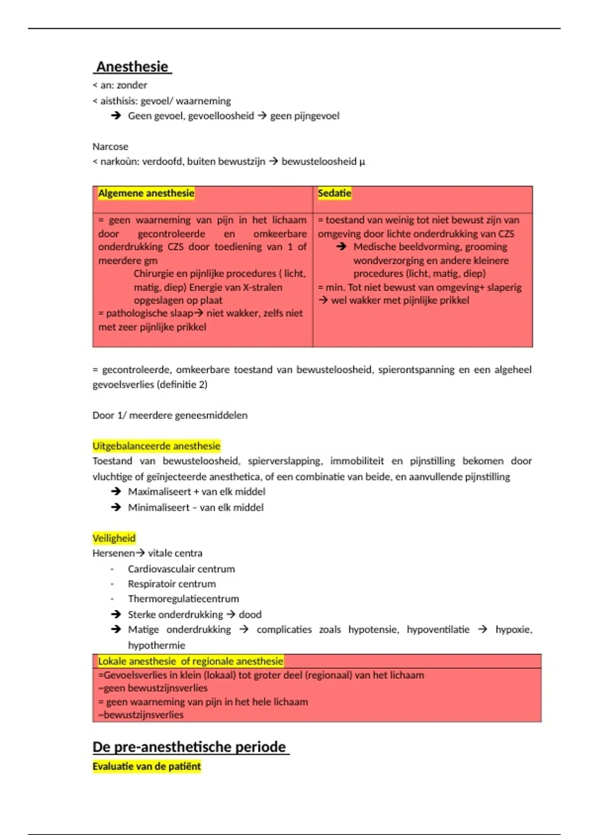 samenvatting anesthesie
