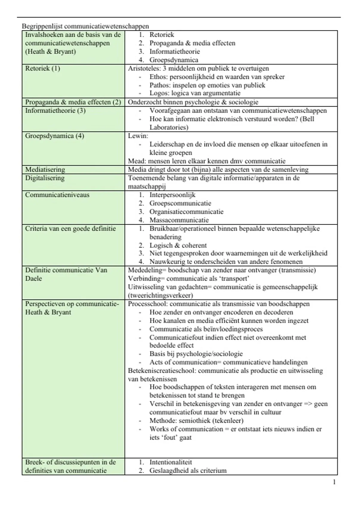 Samenvatting Begrippenlijst communicatiewetenschap volledige cursus