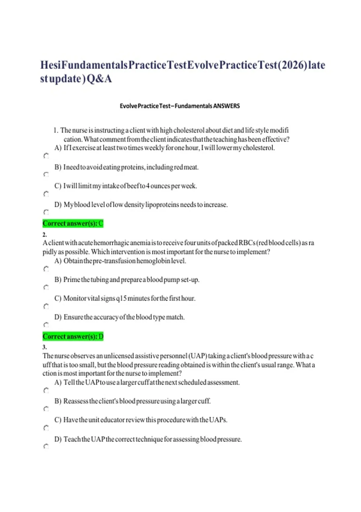 HesiFundamentals PracticeTest Evolve PracticeTest ( 2026) late
