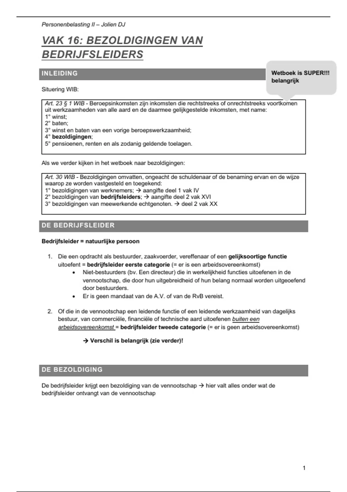 Dit is een samenvatting van het olod Personenbelasting van de afstudeerrichting Accountancy-fiscaliteit, behorend tot de bachelor Bedrijfsmanagement. Deze samenvatting krijgt al verschillende complimenten. Let wel op, de bedragen zijn niet meer recent. Sommige zijn terug te vinden in het recente wetboek, andere zullen gegeven worden. :))