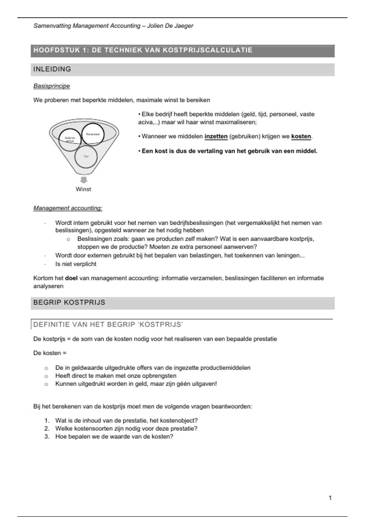 HOOFDSTUK 1: DE TECHNIEK VAN KOSTPRIJSCALCULATIE