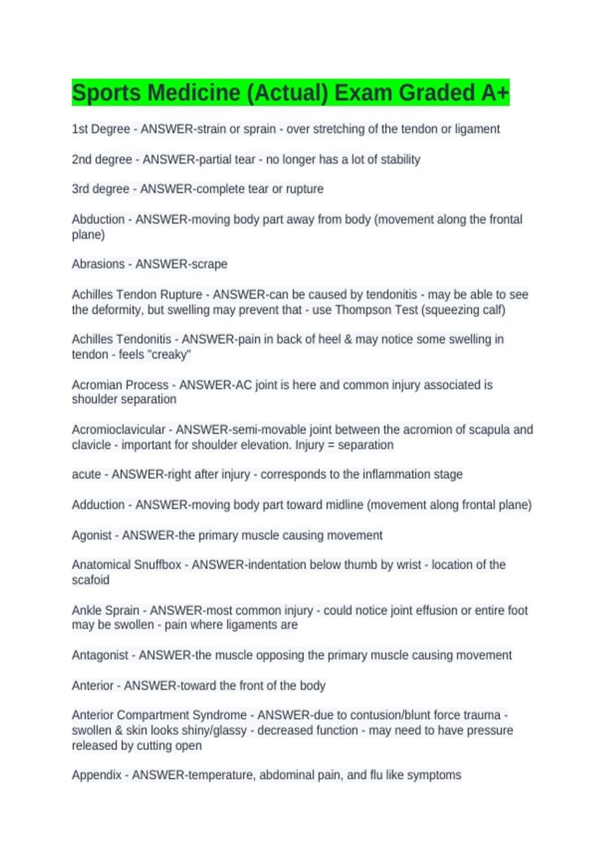 Sports Medicine (Actual) Exam Graded A+