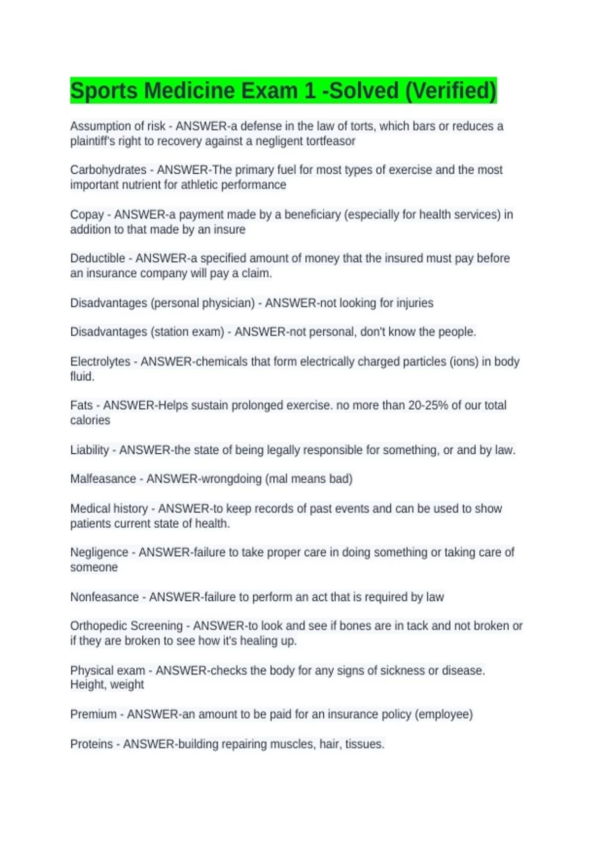 Sports Medicine Exam 1 -Solved (Verified)